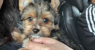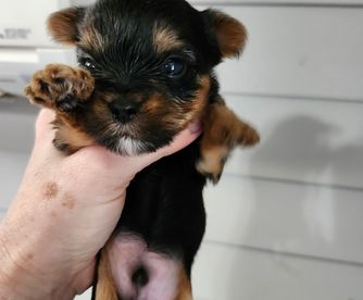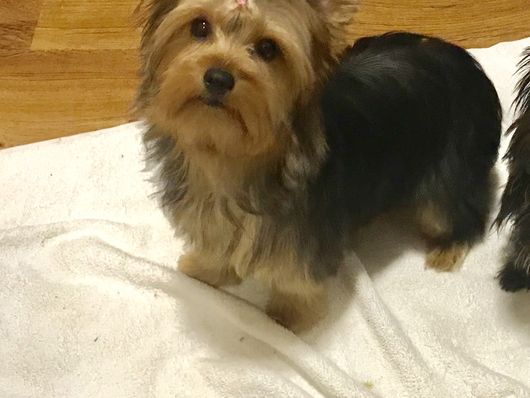 She’s a beautiful black & gold purebred yorkie & very dainty with a very nice loving temperament.