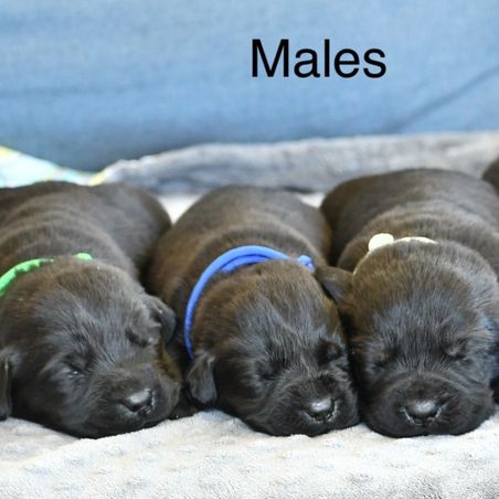 Our puppies include black, chocolate, and yellow. Colors will vary depending on the parent dogs.