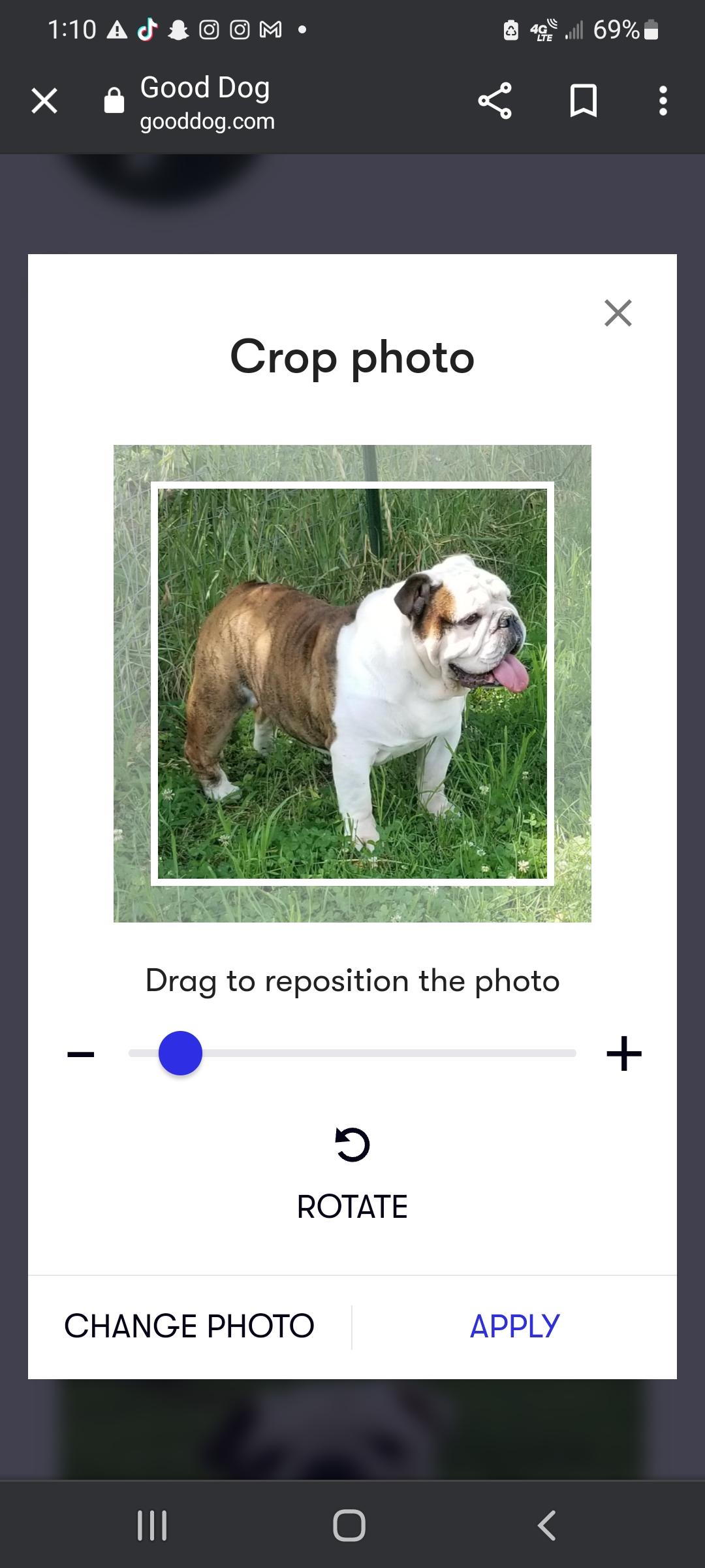 Cas is a male Bulldog. Carefully selected as a great representative of his breed, Dana Isabelle decided to make him part of their program. Dana Isabelle has passed Good Dog’s screening process, which involved a review of their breeding practices, environment, and the mental and physical health of their dogs.