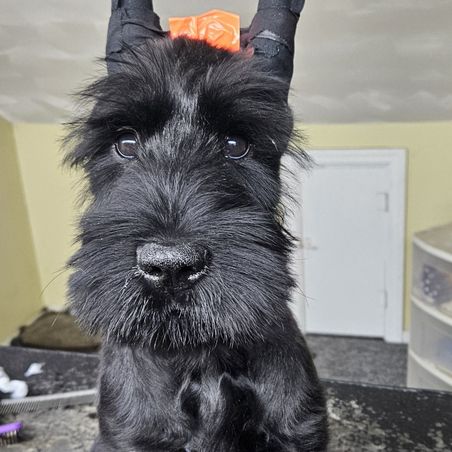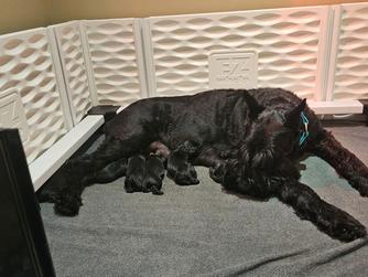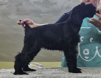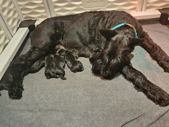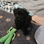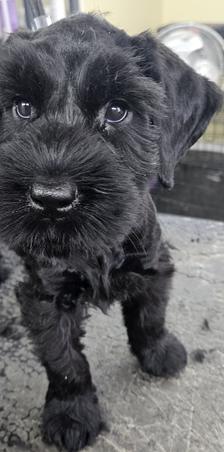 This may be the best puppy experience ever. When I say that I have ther sweetest, most adorable puppy ever. He is exceptionally smart. At 9 weeks, he goes to the door to potty, he whimpers at the door to go out to use the restroom. He has learned the word "sit" and is learning the word "stay." He has learned not to go in the kitchen. He is just a great puppy. Allnof my kids want one now. I know that I will get another one for show purposes and learn the art of hand stripping from Maura. I am extremely happy. I really like that Maura knows her breed well and is easily reachable when you have questions. I highly recommend Surefoot Schanuzers.