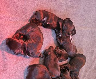 Our puppies are black. Colors will vary depending on the parent dogs.