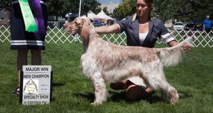 Zarda is a female English Setter. Carefully selected as a great representative of her breed, Ms Kerry Lynn decided to make her part of their program. Ms Kerry Lynn has passed Good Dog’s screening process, which involved a review of their breeding practices, environment, and the mental and physical health of their dogs.