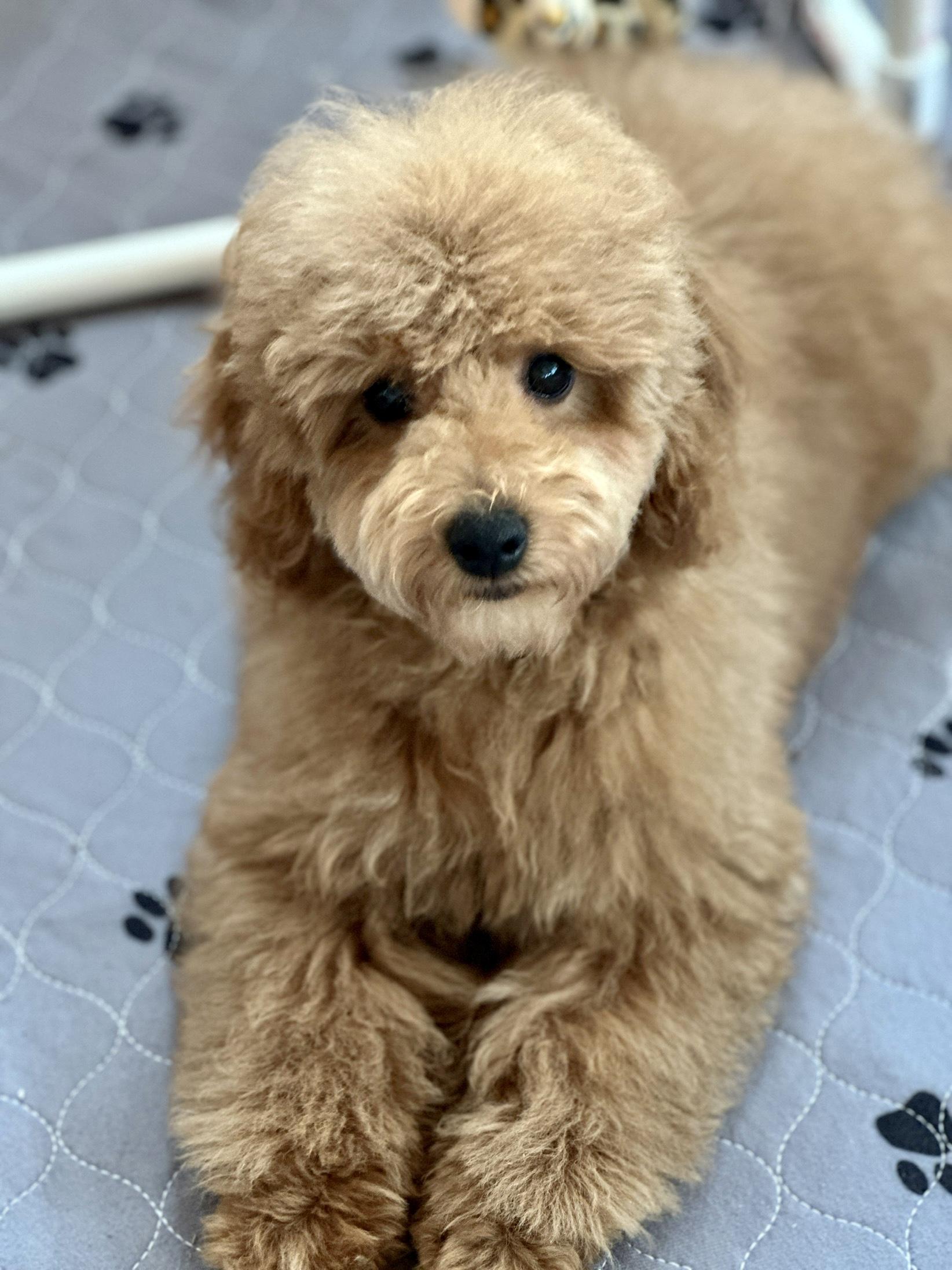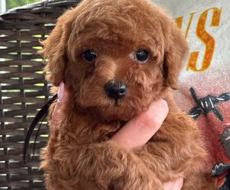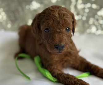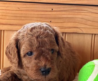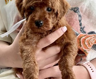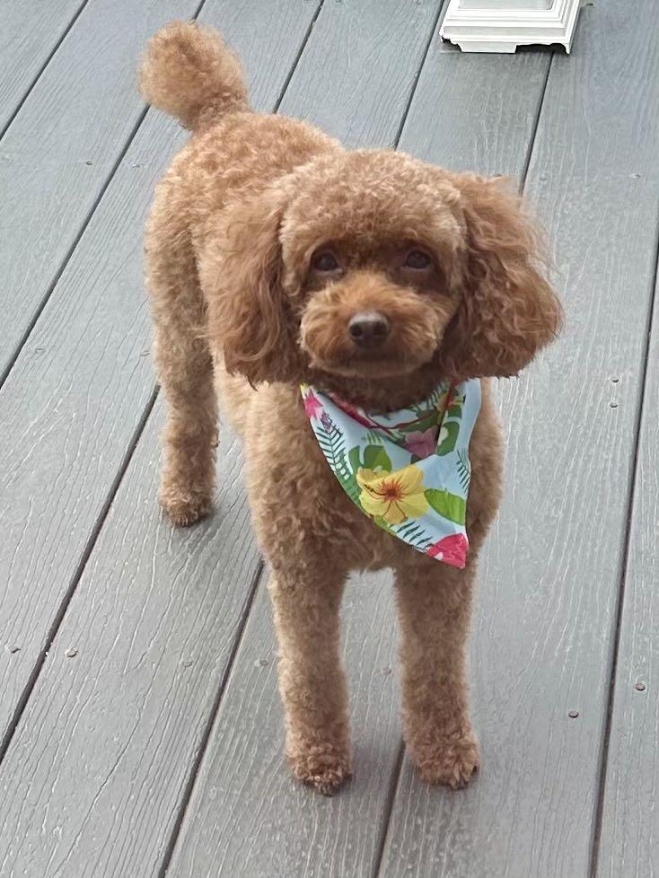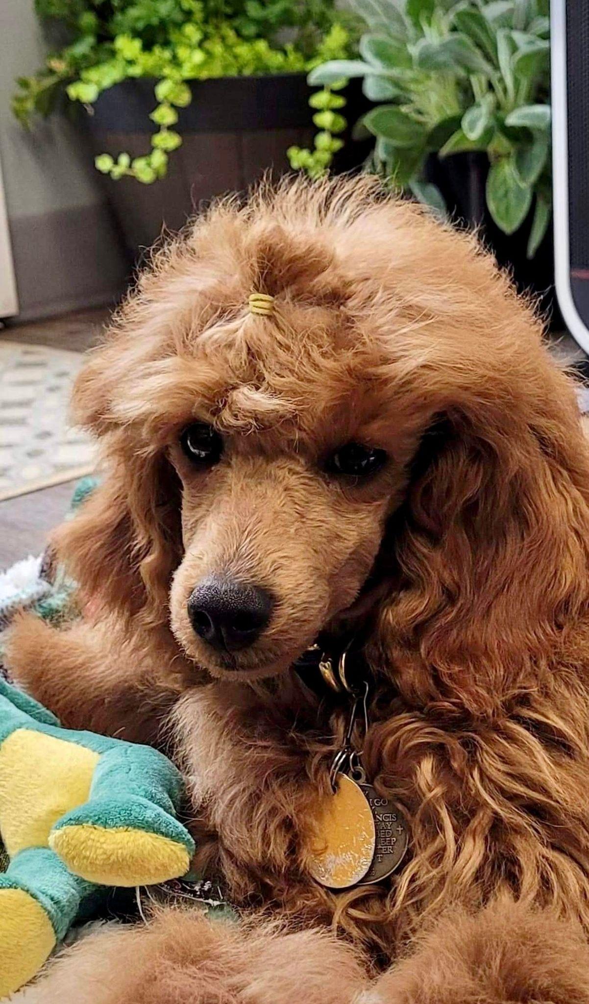 Remy is a beautiful red mini poodle. He has a very gorgeous coat that is very soft and curly. He loves to run and play and is a real charmer.