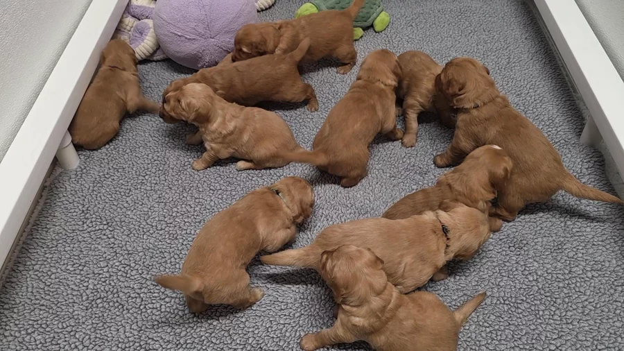 Puppies are 3 weeks old and have just moved out of their whelping box.