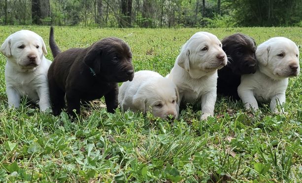 Our puppies include black, chocolate, and yellow. Colors will vary depending on the parent dogs.