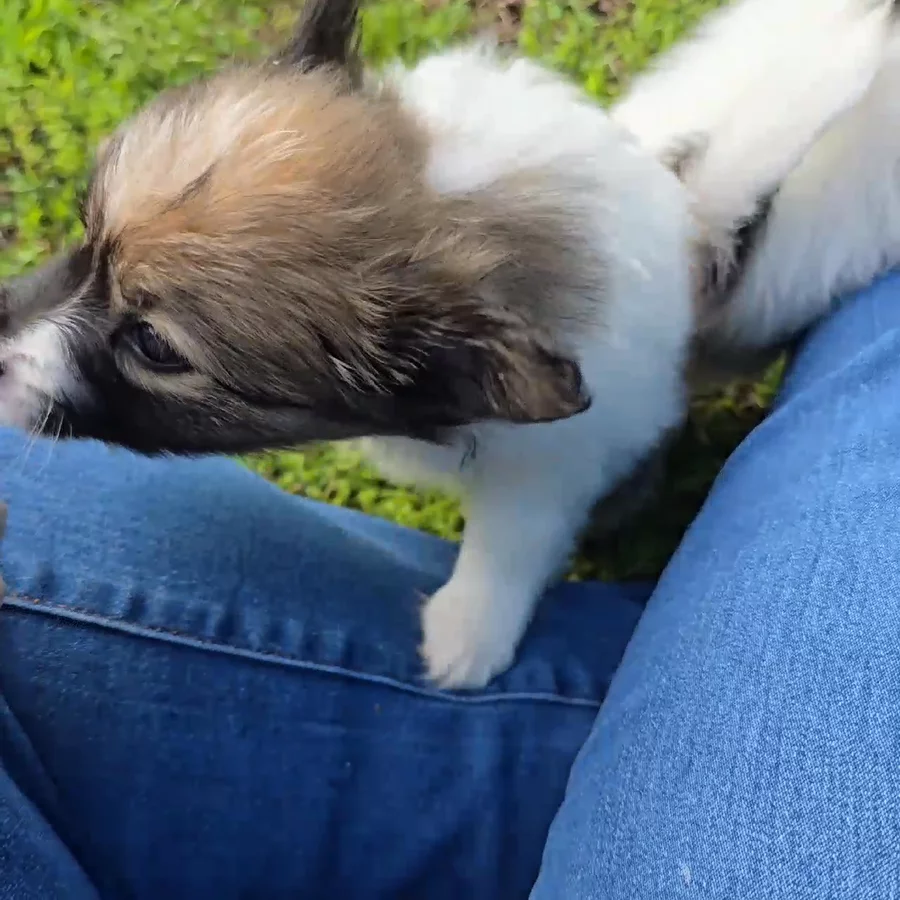 I initially messaged Robin just to ask questions about the breed itself and what a papillon would look like in our family (and if they would be a good fit). Robin was honest and up front about what would be needed from us in order to bring a papillon into our family. At the time, I wasn’t quite ready to make any commitment, but never felt rushed by Robin. She had no problem providing her phone number to talk about questions or concerns. One of her puppies she had available was an older puppy named Forrest, who was the last of his litter still looking for a home. I asked her about his personality and she was very knowledgeable about his individual needs. After speaking with her, I felt confident that Forrest would be an excellent fit for us. She walked me through the whole process of prepping for him to arrive via air and overall it was a very simple and straightforward process with minimal hiccups. Forrest arrived and my son immediately saw him and said “He looks like Mackenzie from Bluey!!!” I gave it a day or two to see if he changed his mind, but it stuck haha. He has been SO calm, has yet to have an accident in the house, he loves to just follow you around and be with you. I can see his mind working when we’re working on basic commands/leash training. Overall, he’s been hands down the easiest puppy I’ve ever had.