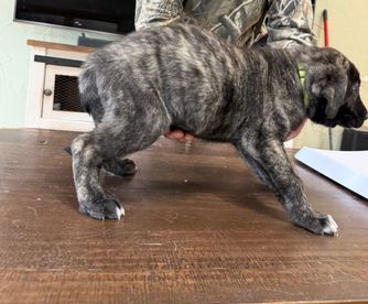 Our puppies include fawn and brindle. Colors will vary depending on the parent dogs.