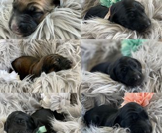 Our puppies include red, black, and silver. Colors will vary depending on the parent dogs.