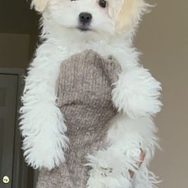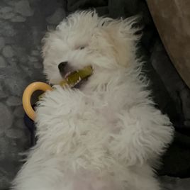 We want to thank Lori for making this so easy. She answered all of our questions & was very helpful. It has been 4 weeks since Vito joined us! We can’t imagine life without him. The vet says he is 4lbs & will probably grow to 9 lbs. He likes to do his business outside & wimps to let me know. He gets the “zoomies” after dinner & loves to play fetch. We love this little fur ball ❤️❤️❤️❤️❤️