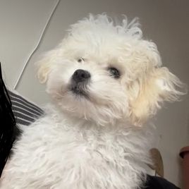 Willow is a sweet, loving, purebred Bolognese girl. She weighs about 8.6 pounds. She absolutely loves belly rubs. She also loves chewing on bully sticks and chasing Luca around the house.