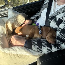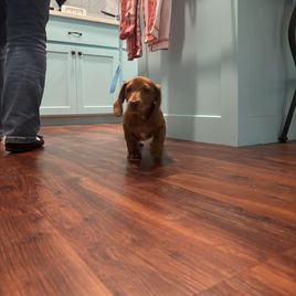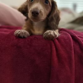 Julie was great! She was quick to reply and filled us in on so much information! She sent us videos of our puppy playing with the litter and pictures while we waited for the pick-up date to roll around. Our puppy is healthy as can be, and we are just so grateful! When we drove out to pick up our puppy, she drove an hour our way to meet us so that we didn’t have to drive the whole way! Thank you so much for the amazing experience, and we will for sure be sending anyone looking for dachshunds your way!