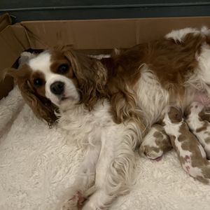 Our puppies include blenheim and tri-color. Colors will vary depending on the parent dogs.