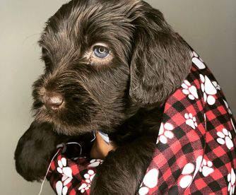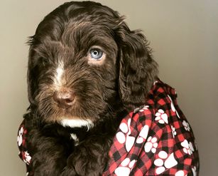 Stamps is a male Australian Labradoodle. Carefully selected as a great representative of his breed, Laura decided to make him part of their program. Laura has passed Good Dog’s screening process, which involved a review of their breeding practices, environment, and the mental and physical health of their dogs.