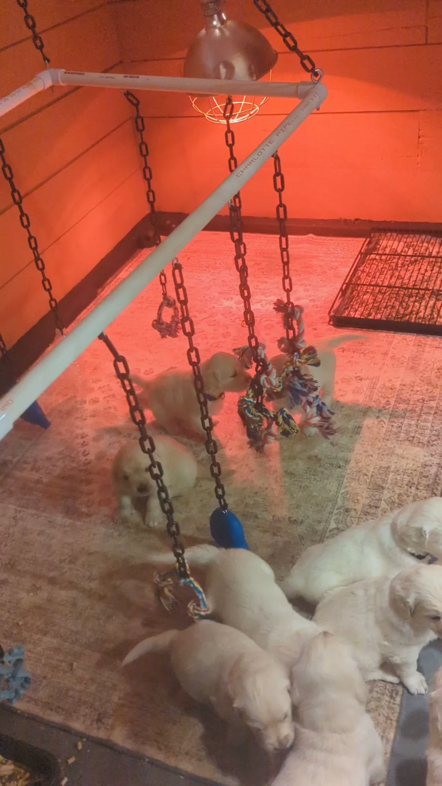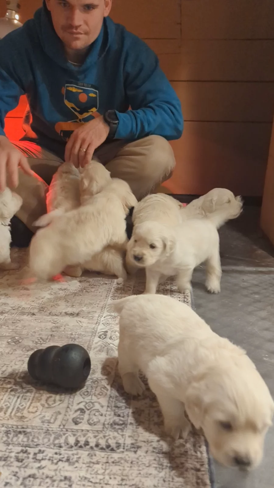 Puppies had some new things introduced! This is such an important stage to start adding new toys, sounds etc! Always giving them things to do, stuff to smell, tastes to try, and loud noises to get used to! We want our puppies to go to their new homes confident and curious about life!