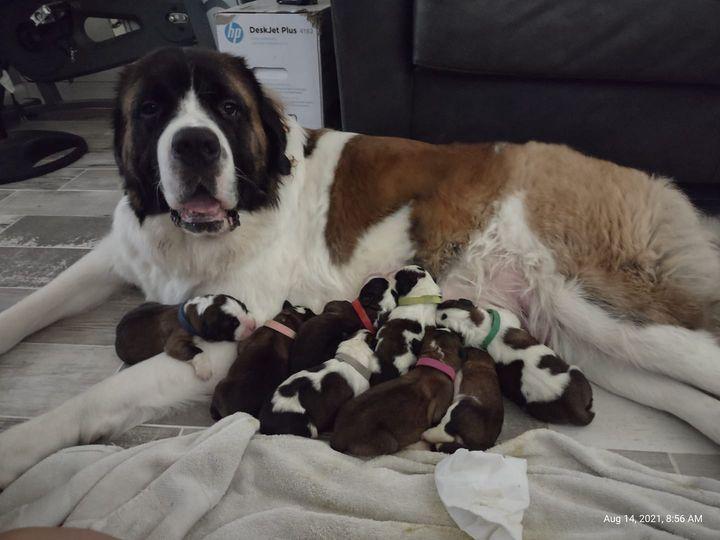 Nala is a female Saint Bernard. Carefully selected as a great representative of her breed, Ileen decided to make her part of their program. Ileen has passed Good Dog’s screening process, which involved a review of their breeding practices, environment, and the mental and physical health of their dogs.
