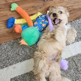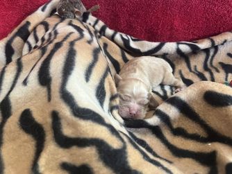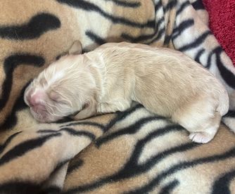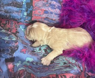 Anne, was amazing through the whole process! From answering my questions when I was searching for my new pup, til getting the pup. Our pup (waffles) is an amazing little guy! He is sweet and very smart. The very first night I brought him home, I took him to the backyard to pee and he started sitting by the door to go pee after..take in mind this pup is only 9 weeks! He sleeps in his crate all night,doesn’t cry at all! He truly comes from great parents! Anne is truly dedicated to this, it shows in her puppy’s! So glad I found my dream doggie!