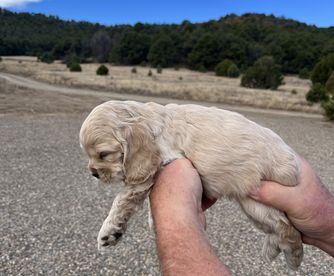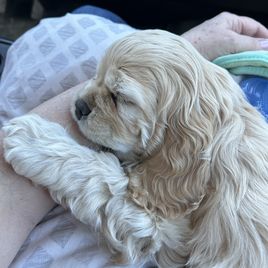 We picked up out female cocker spaniel on November 24, 2023 at Anne’s home outside of Trinidad, Colorado and drove to Albuquerque, New Mexico in a snow storm. We named our puppy Roxie. She has fit right in with our older Springer Spaniel and our cat. She’s the center of everybody’s attention. She has a very loving disposition and has become our lap dog. We have a doggie door that she has learned quickly to go in and out to use the backyard and play. We were grateful to have found Anne and our new cocker spaniel.