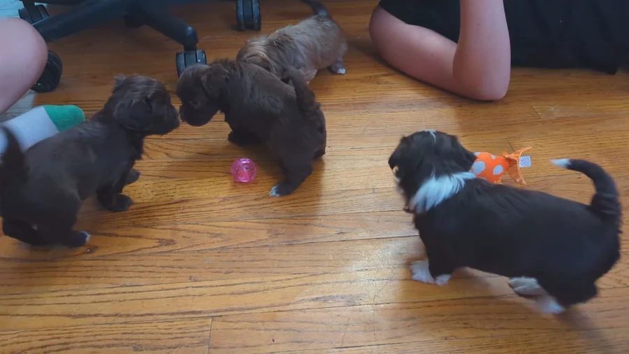 Our puppies include red, chocolate, chocolate sable, and red sable. Colors will vary depending on the parent dogs.