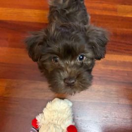 We adopted Hershey from Michelle (formerly Sourdough) and everything could not have gone better! The communication and speed of responses was very fast. Any question I had was answered quickly. She was kind enough to send us pictures and videos while we waited for Hershey to be ready on December 30th. Hershey has a great little personality. He is three months old today and sleeps through the night and is well on his way to be being potty trained. I have never had a dog at three months that loved to play fetch already. He picks things up very quickly. We could not be happier!