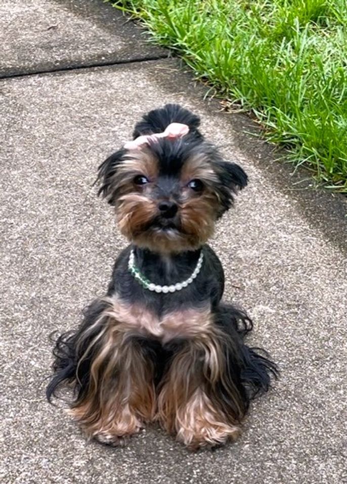 Sasha is a female Yorkshire Terrier. Carefully selected as a great representative of her breed, Jeanette decided to make her part of their program. Jeanette has passed Good Dog’s screening process, which involved a review of their breeding practices, environment, and the mental and physical health of their dogs.
