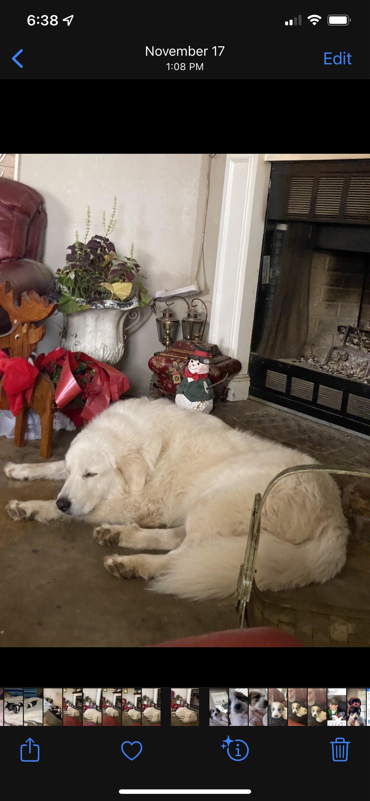 Fin is a male Great Pyrenees. Carefully selected as a great representative of his breed, Bruce & Elaine decided to make him part of their program. Bruce & Elaine has passed Good Dog’s screening process, which involved a review of their breeding practices, environment, and the mental and physical health of their dogs.
