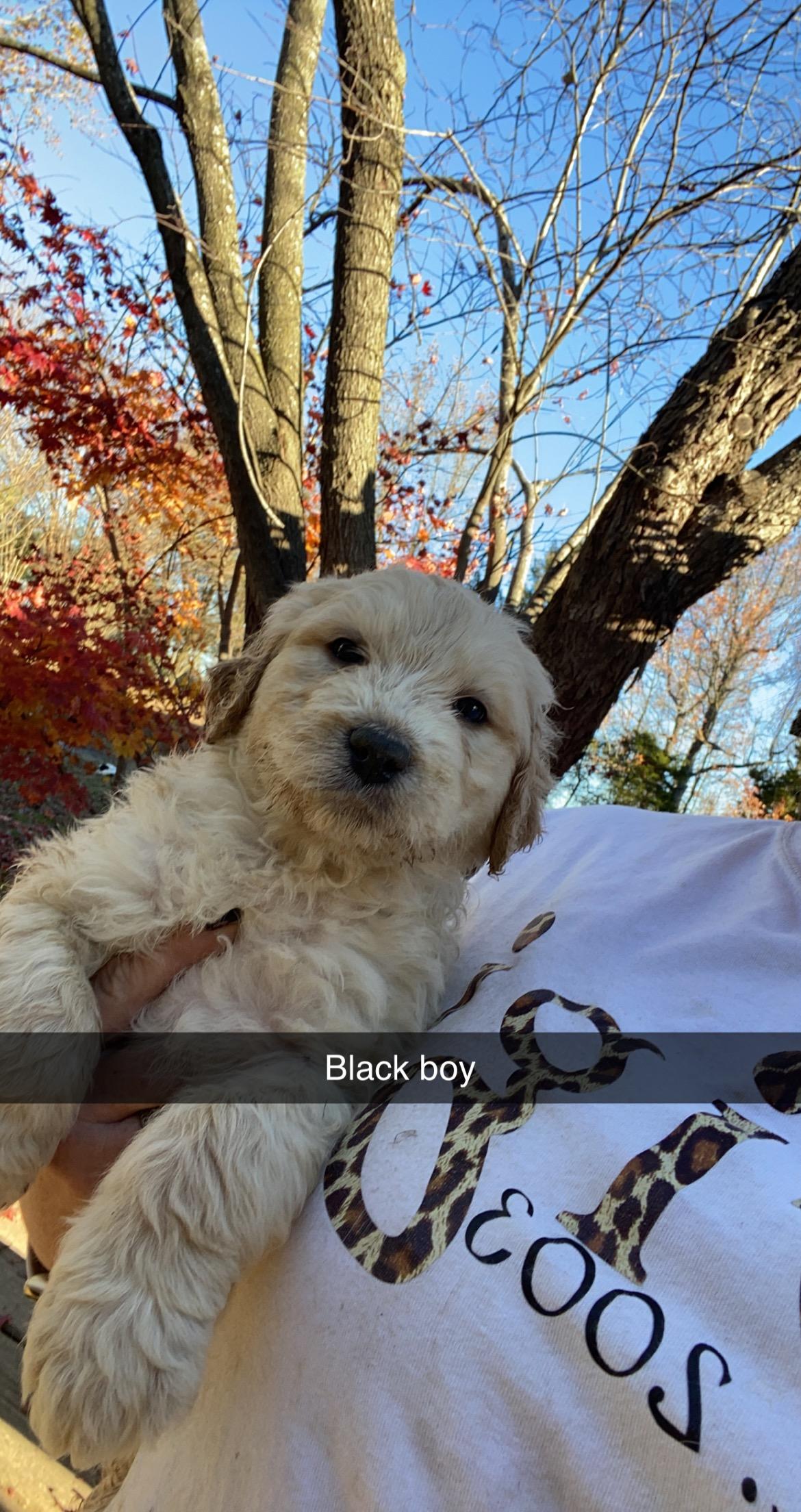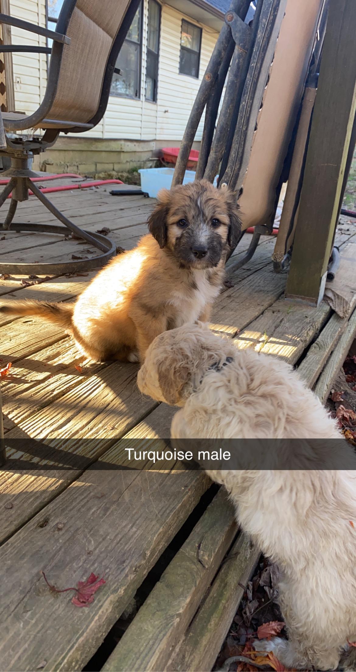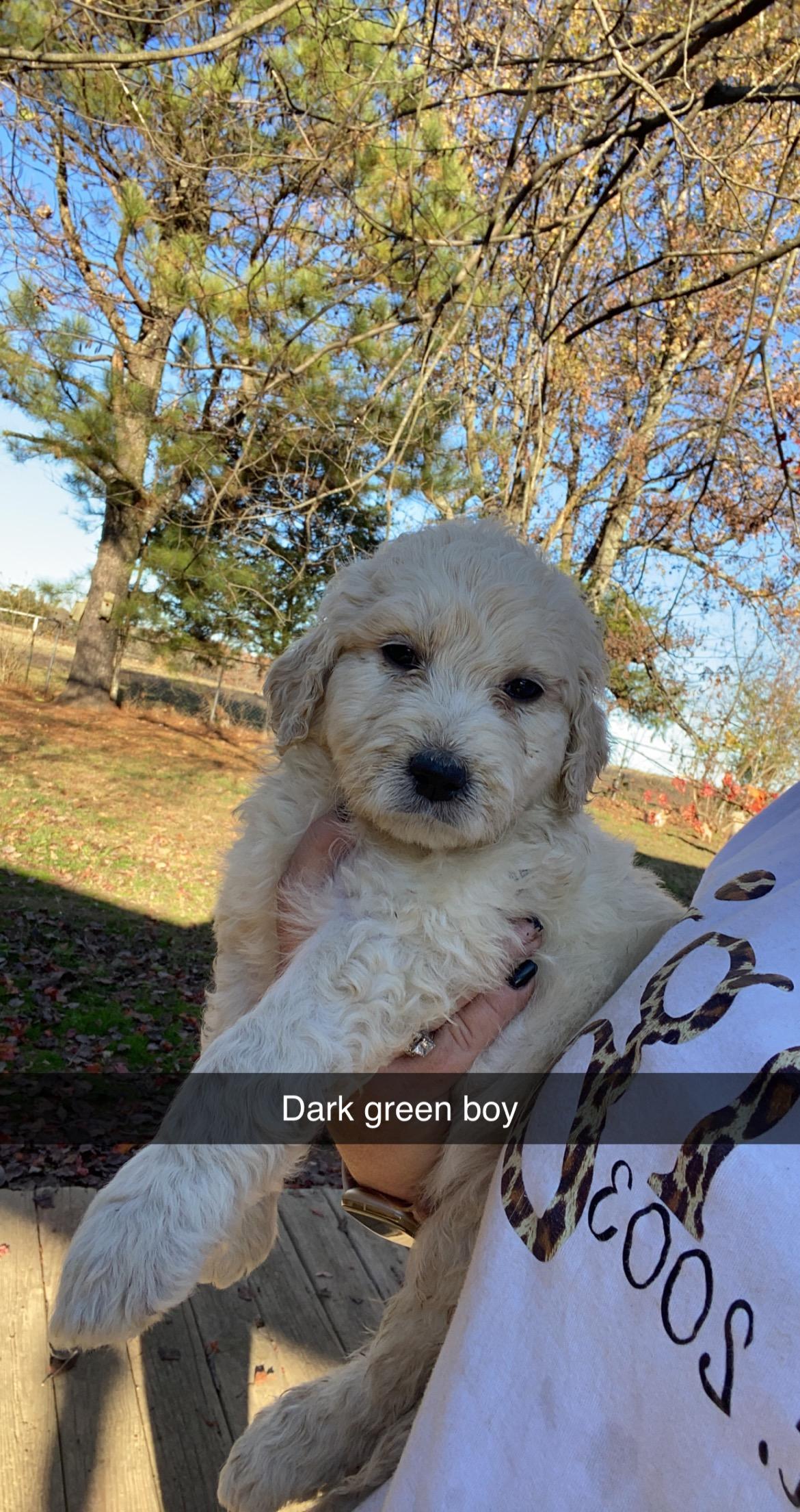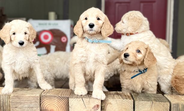 Our Goldendoodle puppies include cream, apricot, and red. Pyredoodle puppies include brown, red, parti, cream, cafe au lait, blue, and black. Colors will vary depending on the parent dogs.