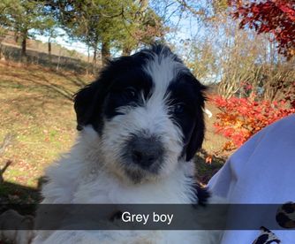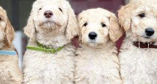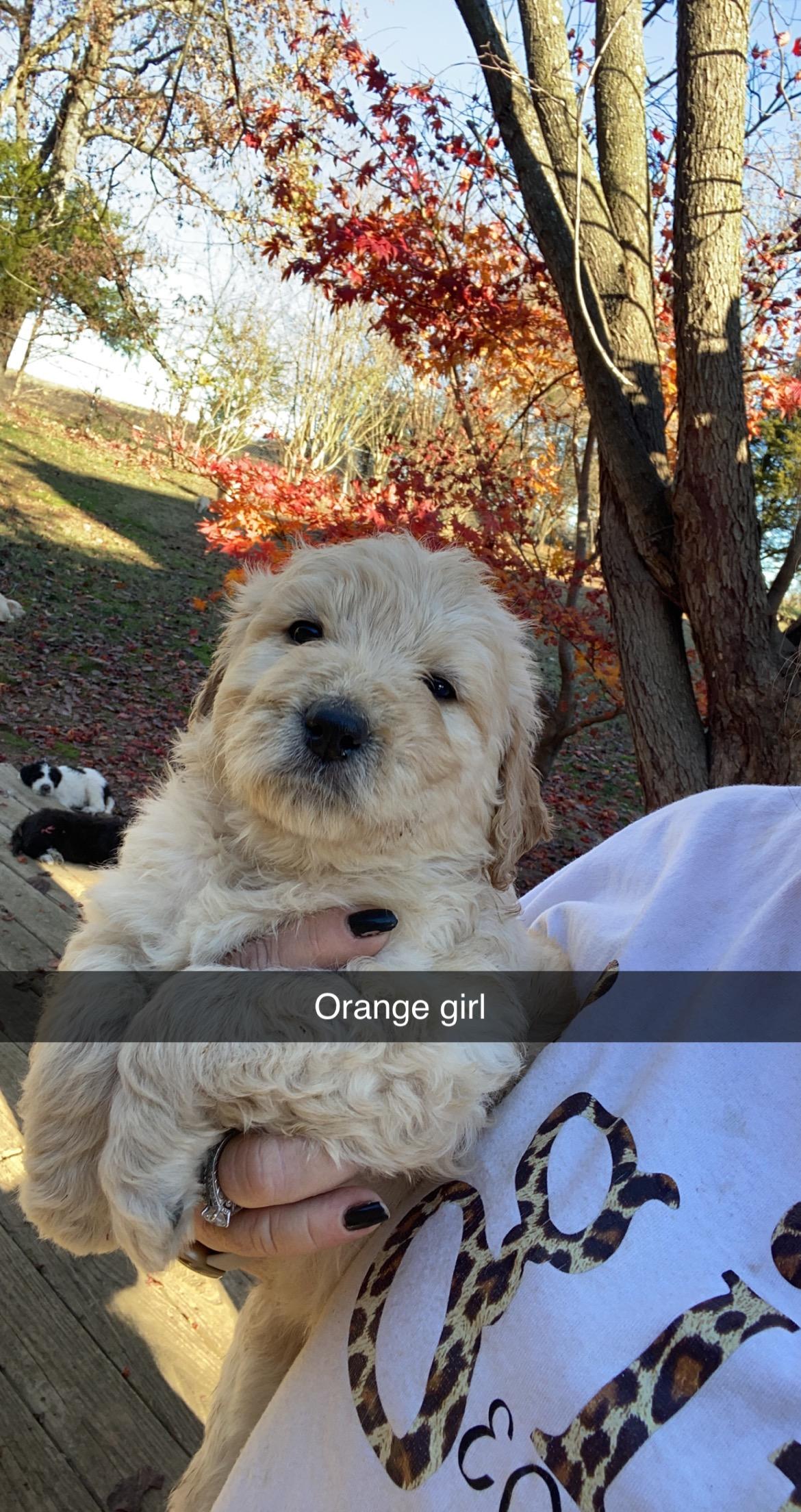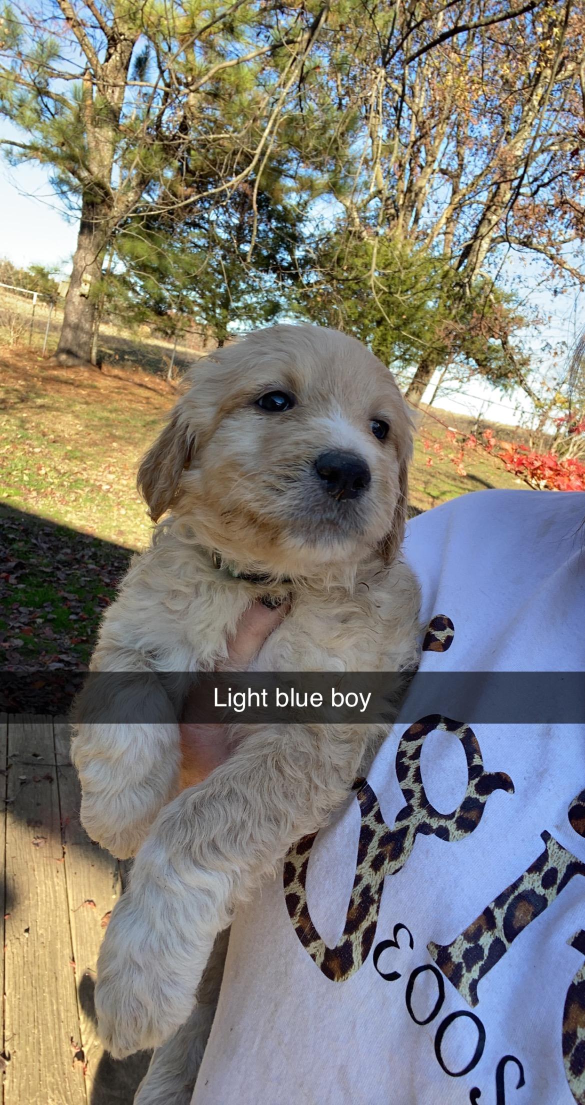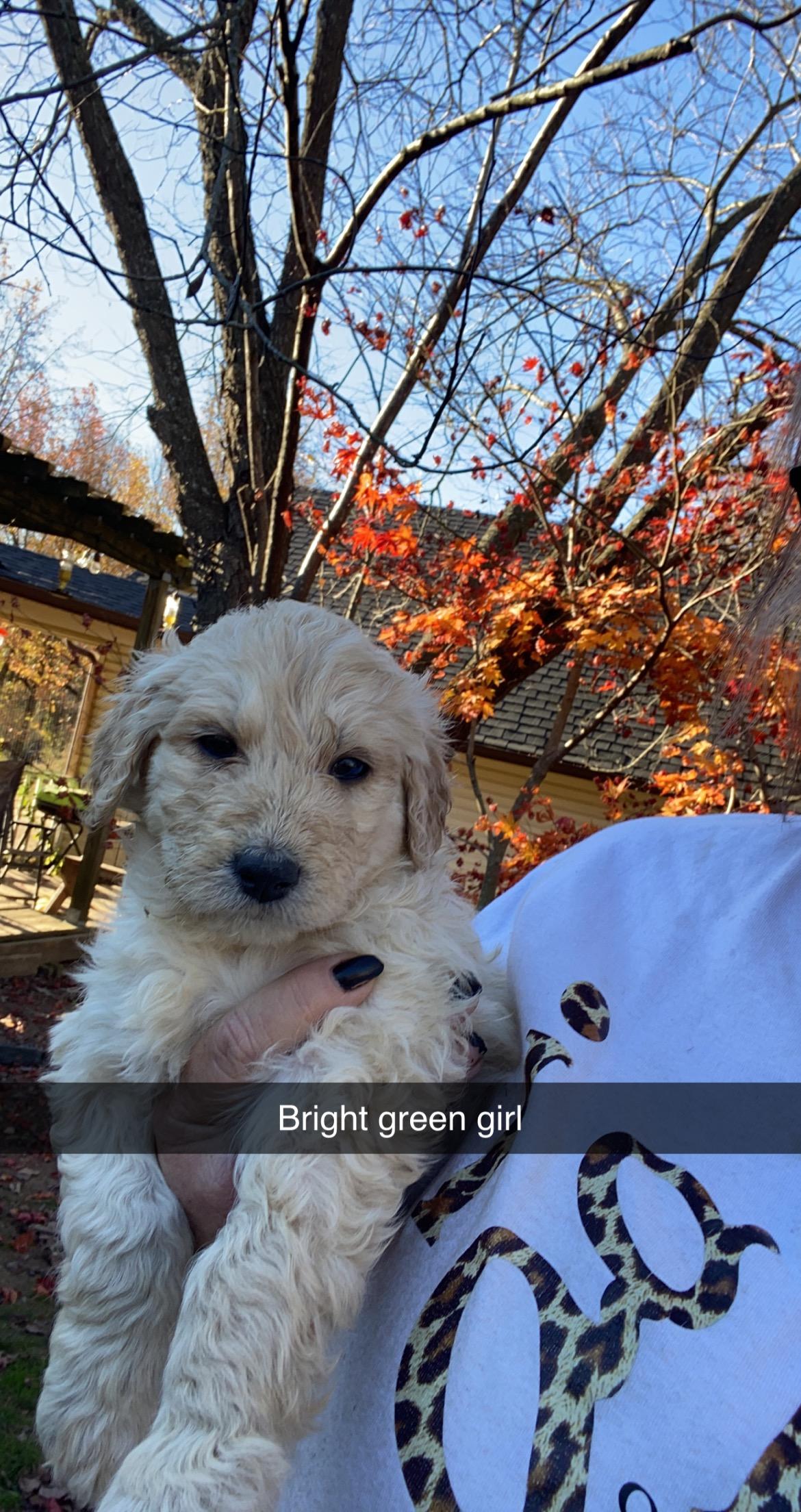 Our Goldendoodle puppies include cream, apricot, and red. Pyredoodle puppies include brown, red, parti, cream, cafe au lait, blue, and black. Colors will vary depending on the parent dogs.