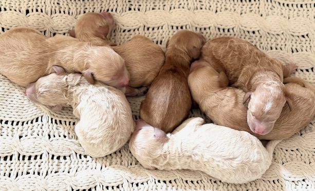 Our friends purchased a Goldendoodle for their family. When I met their pup, I fell in love with the breed, and dove into a lot of research then ended up adopting our own Micro Goldendoodle; Where the inspiration for the breeding journey began. Our other friends are longtime Goldendoodle breeders in FL; They filled us in on what a great time they've had in the business and coached us along the way.
