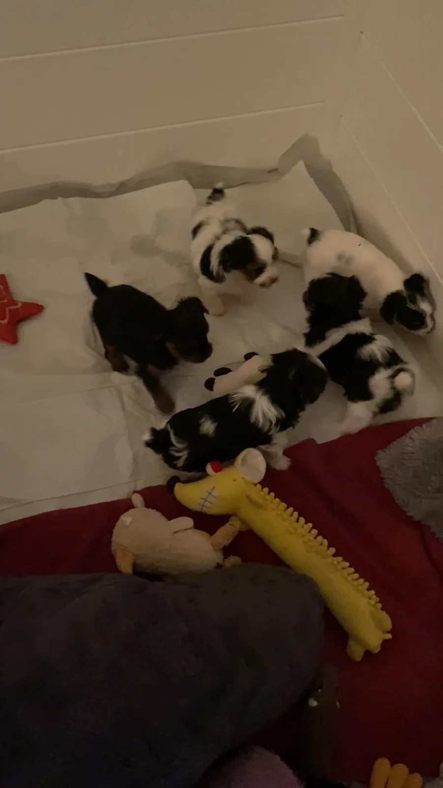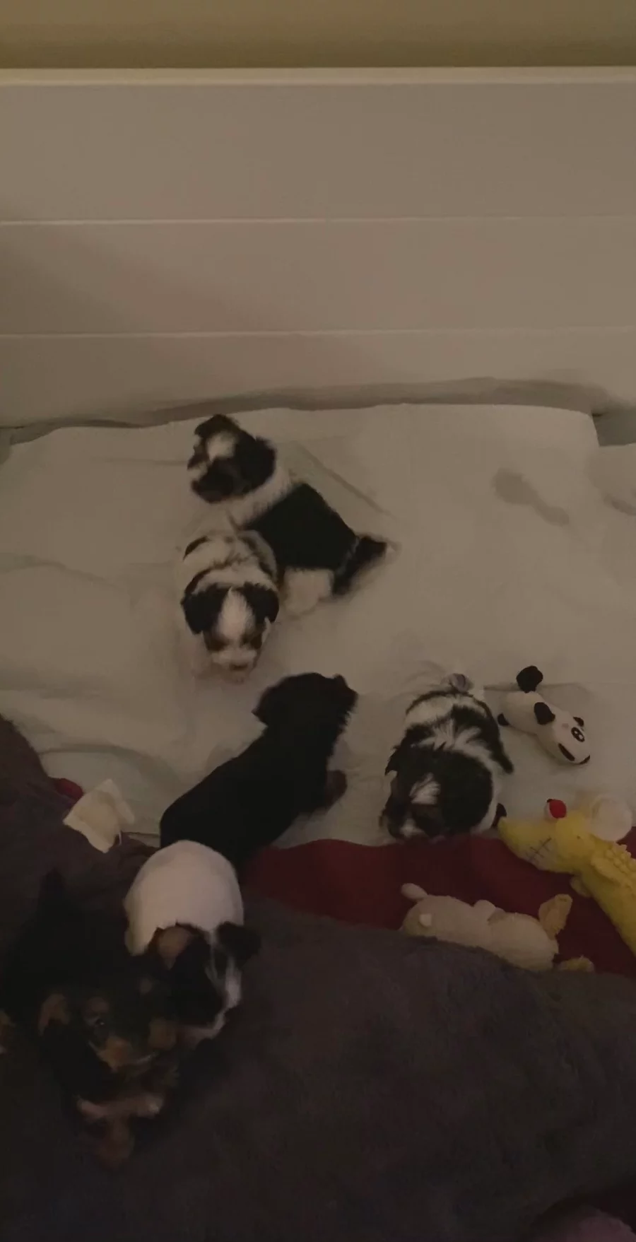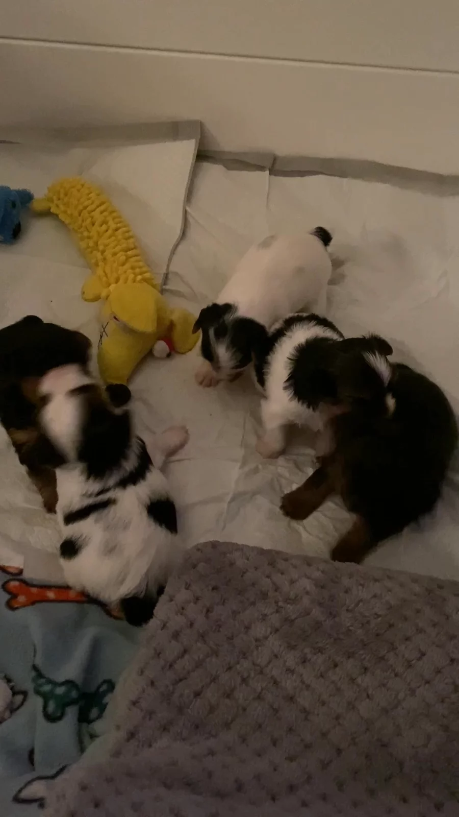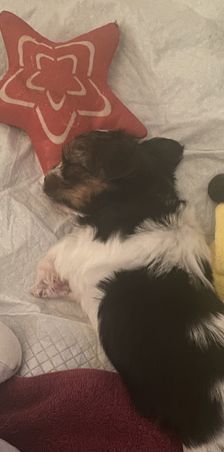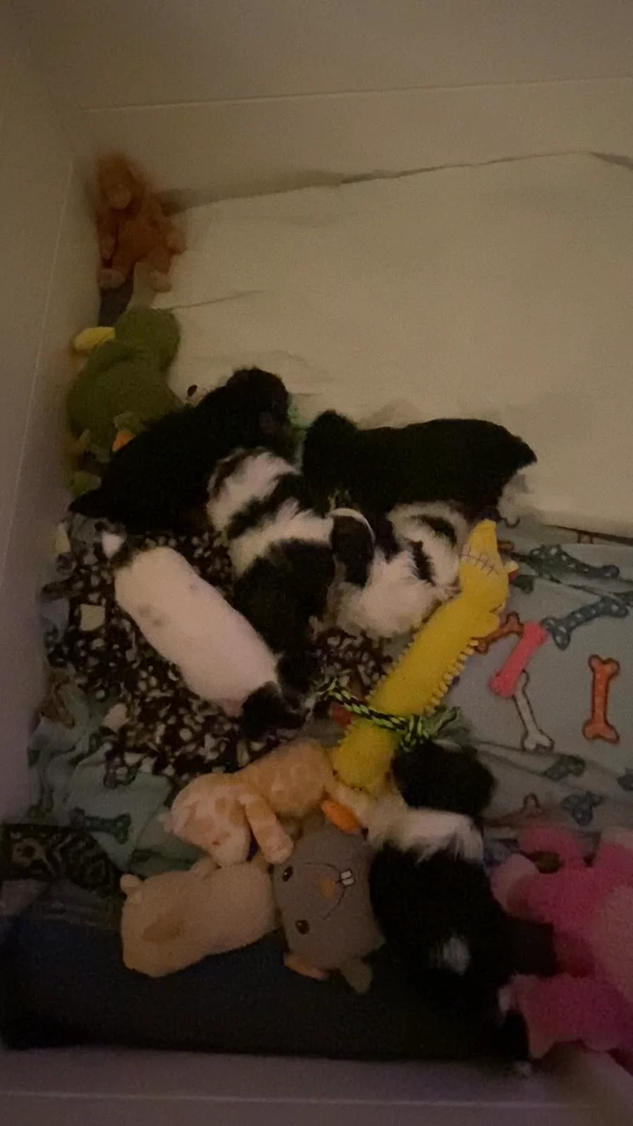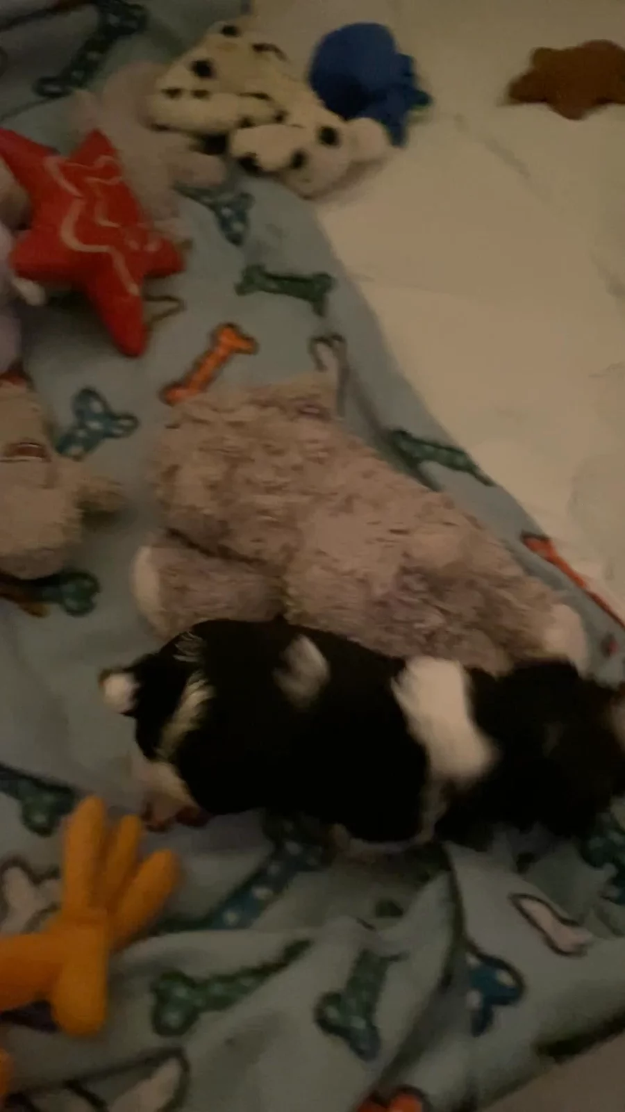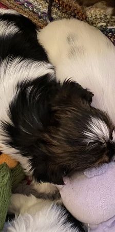 Little boy blue is settling in for a nap. He is so sweet and loves to snuggle with his siblings…and a few toys. 🤍🐶🤍