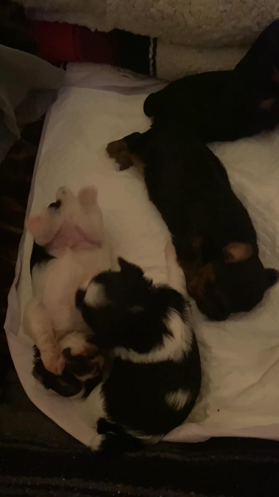 The puppies have a burst of energy after eating dinner. A few teeth are coming thru so feelings do get hurt from time to time as they learn how to play together. 🤍🐶🤍