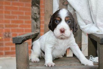 May is a female English Springer Spaniel. Carefully selected as a great representative of her breed, Jada decided to make her part of their program. Jada has passed Good Dog’s screening process, which involved a review of their breeding practices, environment, and the mental and physical health of their dogs.
