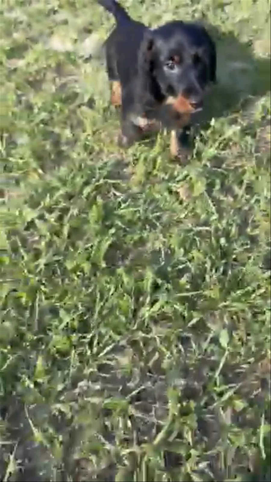 Franklin is my old man with his personality. Very sweet mannered but prefers to be by himself with his bed and food! He is wired haired and black and tan.