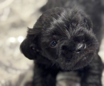 CKC registered/a beautiful black with hints of salt and pepper mixed in.