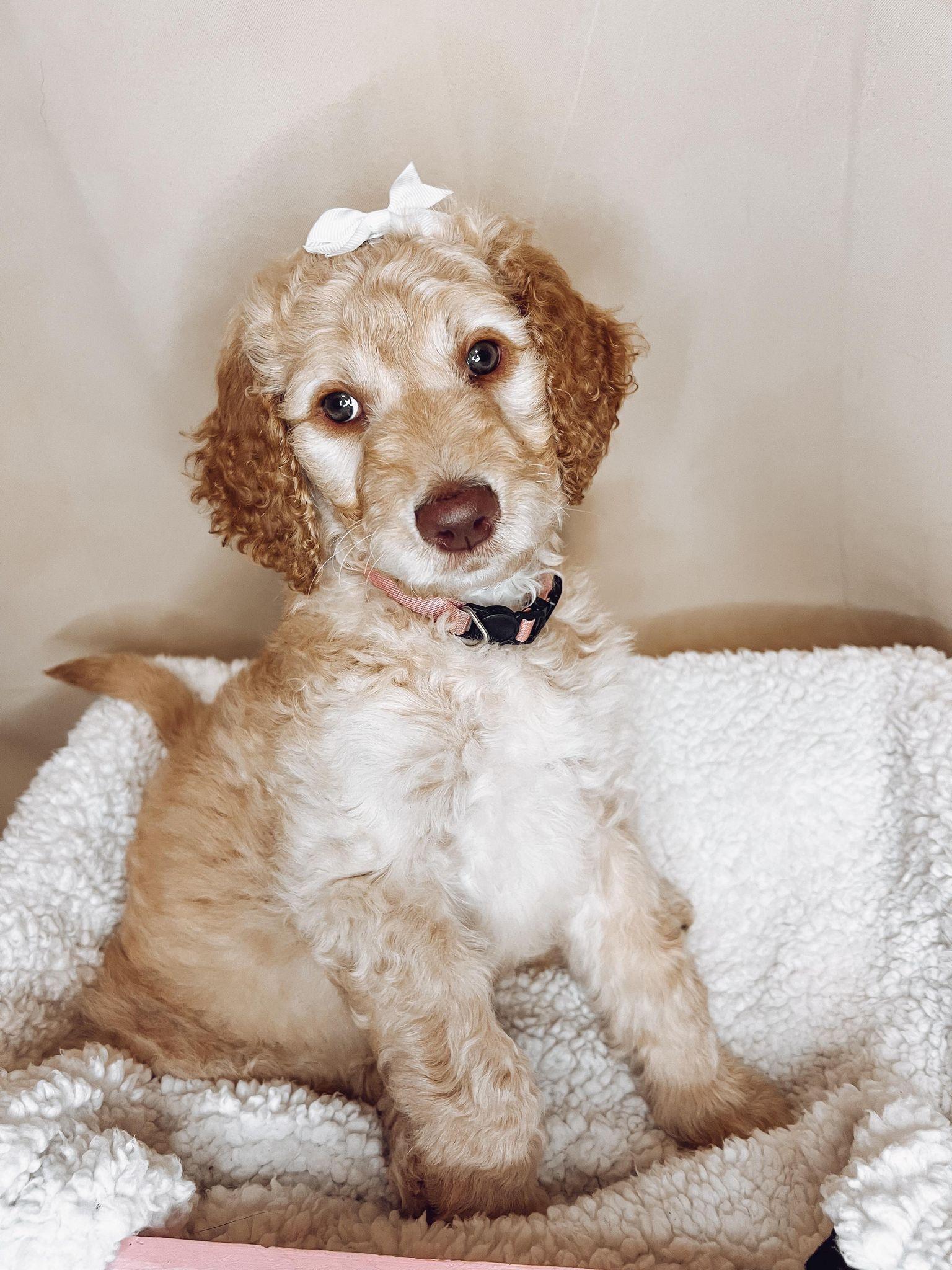 Our puppies include cream, apricot, red, and chocolate. Colors will vary depending on the parent dogs.