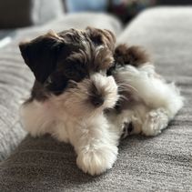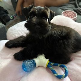 Mary was a delight to work with as we acquired our 8th miniature Schnauzer. She was very professional and easy to work with and is obviously a responsible breeder and not a puppy mill. We were able to meet our schnauzer at 6 weeks and also meet the dam. Our Schnauzer was well socialized and seems to love everyone. Mary deliver her with a full vaccine history, microchip information and initial grooming. She has now visited our veterinarian and was given a very good report.