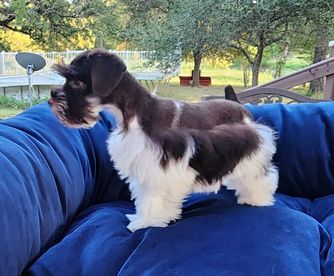 Cookie's litter is just turning 11 weeks old. Only two left and one is a tiny parti boy. The other is a toy size dark salt & pepper. Very playful and so cute. They are ready to go to their permanent home and will make someone very happy.