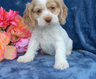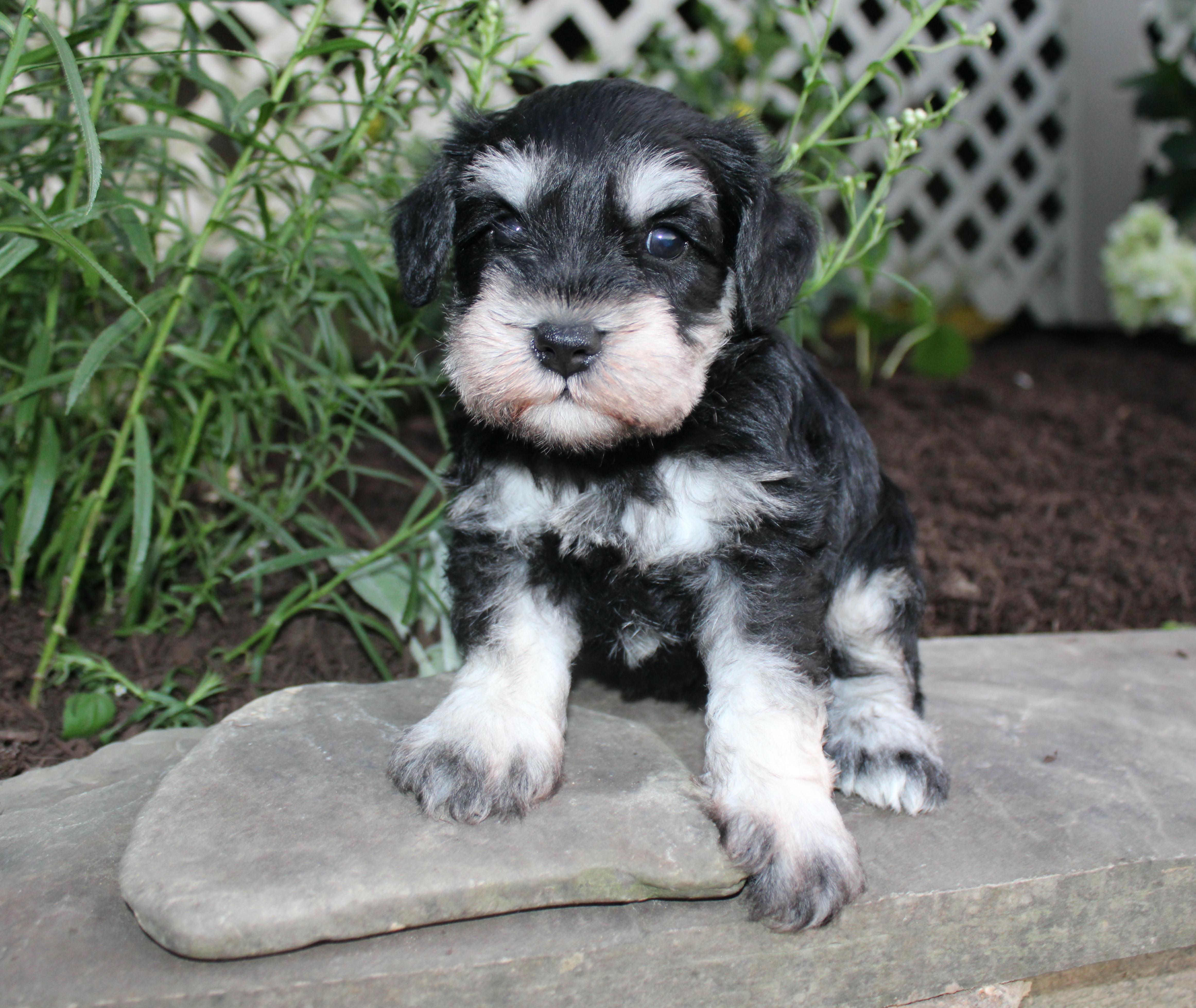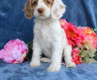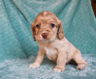 Our Cocker Spaniel puppies are buff. Miniature Schnauzer puppies are black and silver. Colors will vary depending on the parent dogs.
