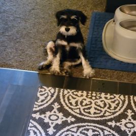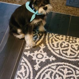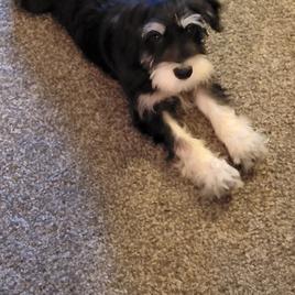 Axel is doing great. He has settled in with us in his forever home, sleeping through the night with no accidents. He is doing well in his housetraining with a few accidents. He loves all his toys and plays with them constantly. He likes to sleep on my lap while watching tv. He is smart and has learned to go in and out the doorstep to go outside. We couldn't have asked for a better puppy from a great breeder.
