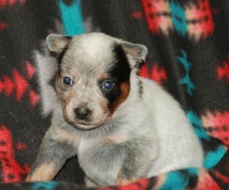 Our Australian Cattle Dog puppies include blue speckled, red speckled, and blue. Pembroke Welsh Corgi puppies include sable, blue, and black and tan. American Corgi puppies include sable, red merle and white, and blue merle and white. Companion Cross puppies include blue, black and tan, and red. Colors will vary depending on the parent dogs.
