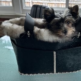 I can’t say enough good things about Helen to express not only my satisfaction but my gratitude to her. After I filled out the app online, she called me and we spoke for almost 90 minutes. She was not concerned with selling me a puppy, she was concerned about making sure that she was selling the right puppy to the right person based on the puppy’s needs and temperament and my personality, lifestyle and experience with small breed dogs. The following day, I drove the 2 1/2 hours to her home and was able to meet all of her adult dogs and all of the puppies on site. I was very impressed with the setup she has for her breeding, her obvious care for the dogs, and the rapport she had built up with the puppies. She would call them by name, and they responded to their names. We both agreed that the puppy I had inquired about was a great match, and I made the drive home with Jasper in a carrier next to me. Helen checked in on us later that day and the next day again to see how it was going and inquire about whether Jasper was eating in his new environment. We have kept in touch, and I’ve sent her numerous pictures and updates on his settling in at our home and fitting in with the 2 larger dogs that we have. In my almost 60 years, I have had many dogs, and many came as puppies, but I have never had a puppy that came to me with as calm, well balanced and intelligent a countenance as Jasper. In less than 2 weeks, he is housebroken, allows me to groom him daily, and has been going many places with me… completely content in a stroller or carrying tote. Helen has made it clear that she is available to me for any questions or concerns I might have for Jasper’s entire lifetime. She is a high quality breeder in every sense of the term, and I am forever grateful for the amazing companion that she provided to me!