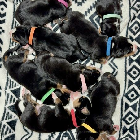 Sweet Stream Swissies reports to performing the health tests below on their breeding dogs. Ask your breeder about the tests performed on the parents of your litter. Learn more about health testing for Greater Swiss Mountain Dogs.
