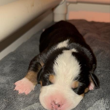 Sunnie is beauty, brains, and incredibly strong! She has a soft, cuddly side, and she has a fun, playful side ! Give her a job she’s ready to work! Sunnie is the all around definition of a stunning Swissy and we are proud to call her the mom to our future litters! Sunnie has excellent genetics and OFA certified.