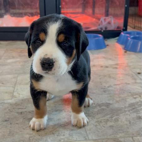 Ruby is a female Greater Swiss Mountain Dog. Carefully selected as a great representative of her breed, Meghan decided to make her part of their program. Meghan has passed Good Dog’s screening process, which involved a review of their breeding practices, environment, and the mental and physical health of their dogs.