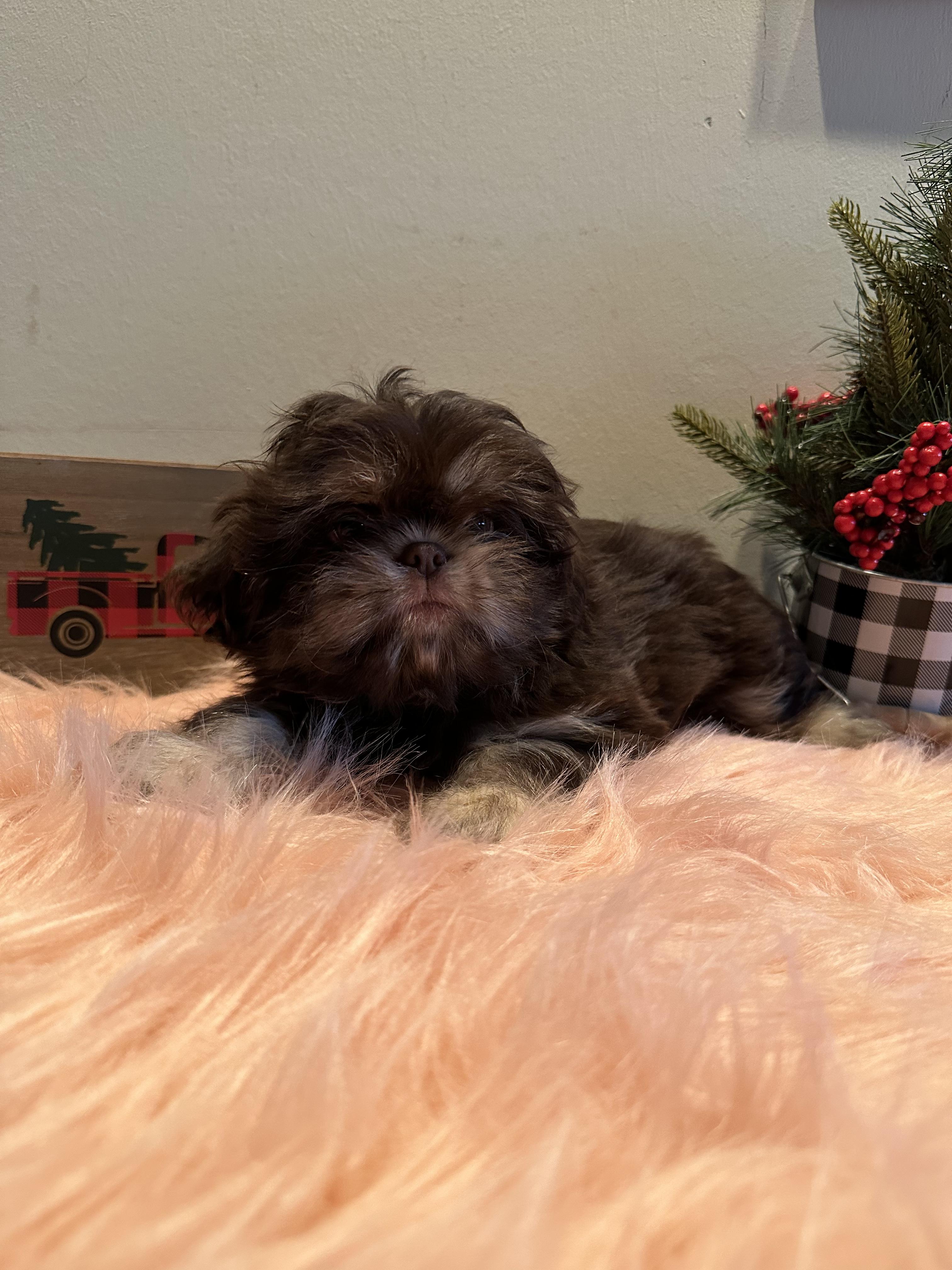 Our Shih Tzu puppies include tricolor, sable, chocolate and tan, chocolate, black and tan, black, liver, blue, gold, red, silver, and white. Pomeranian puppies include tri-colored, black and tan, chocolate sable, chocolate and tan, and orange sable. Colors will vary depending on the parent dogs.