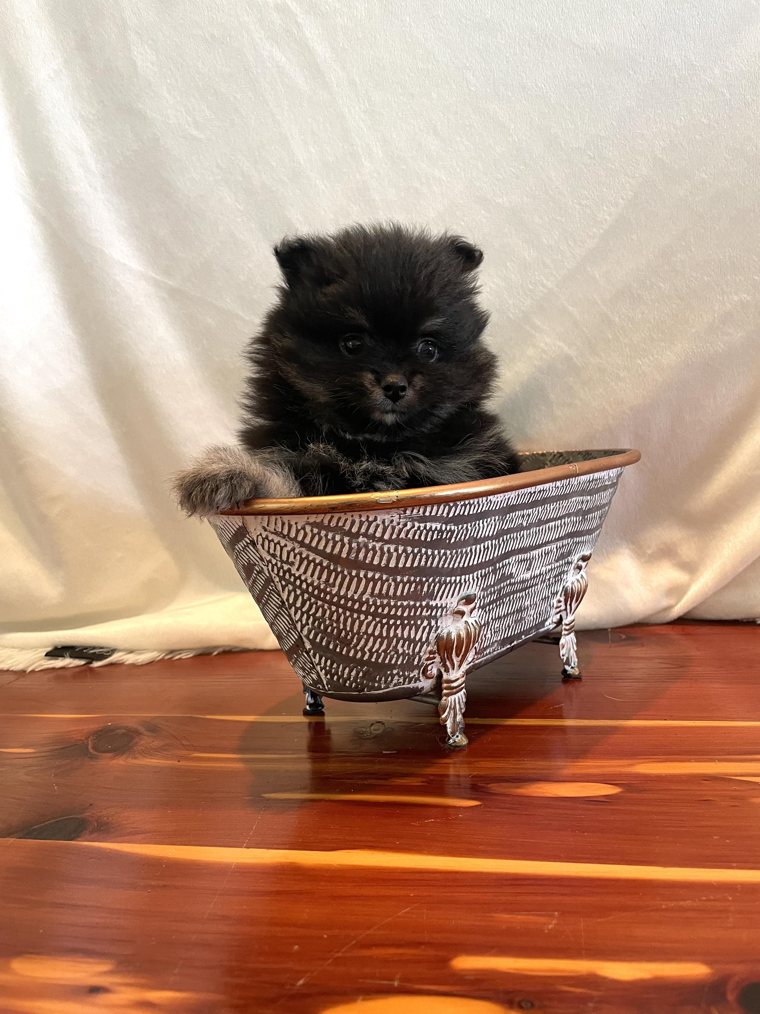 Our Pomeranian puppies include tri-colored, black and tan, chocolate sable, chocolate and tan, and orange sable. Shih Tzu puppies include tricolor, sable, chocolate and tan, chocolate, black and tan, black, liver, blue, gold, red, silver, and white. Colors will vary depending on the parent dogs.