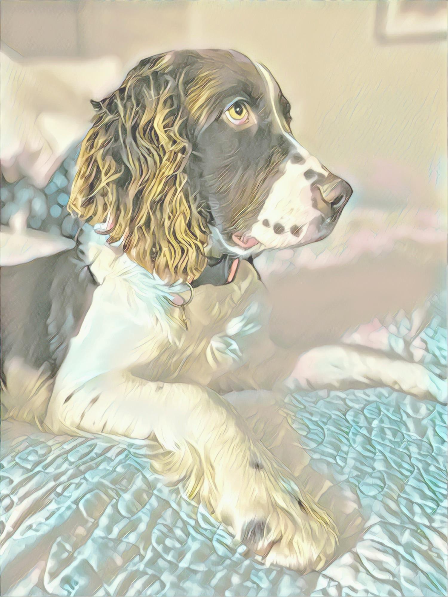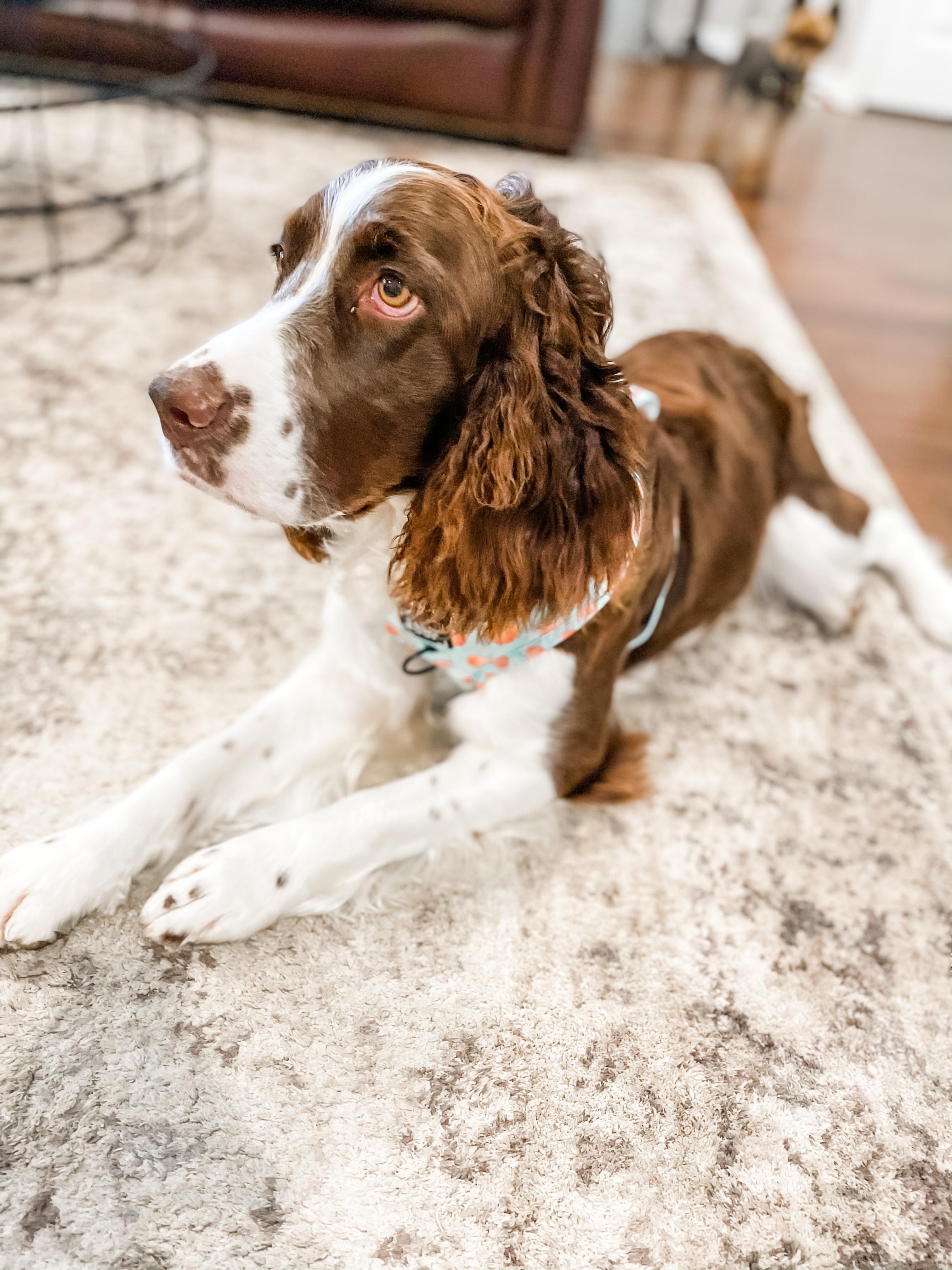 Sunny is a female English Springer Spaniel. Carefully selected as a great representative of her breed, Ash decided to make her part of their program. Ash has passed Good Dog’s screening process, which involved a review of their breeding practices, environment, and the mental and physical health of their dogs.