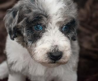 Bean is a sweet and gentle girl who is a 4th generation momma here at Sweethaven! She has a deeply unique dark chocolate merle coat from the “Otis” line.