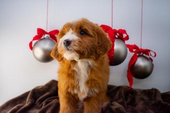Sage is a picture perfect goldendoodle - sweet, healthy and gorgeous! Her deep red coat makes her stand out when we take her places, and she always gets treated like a star!