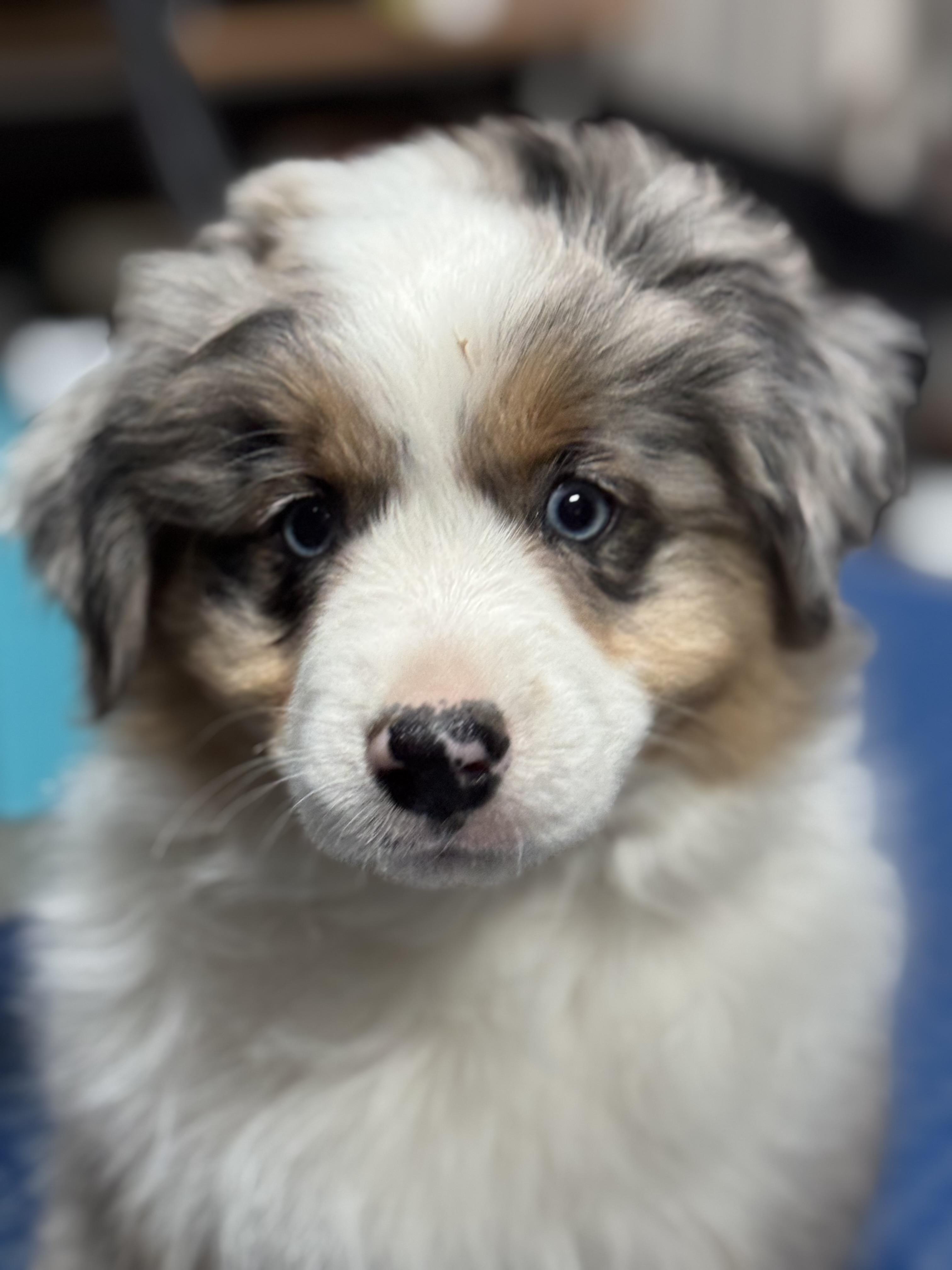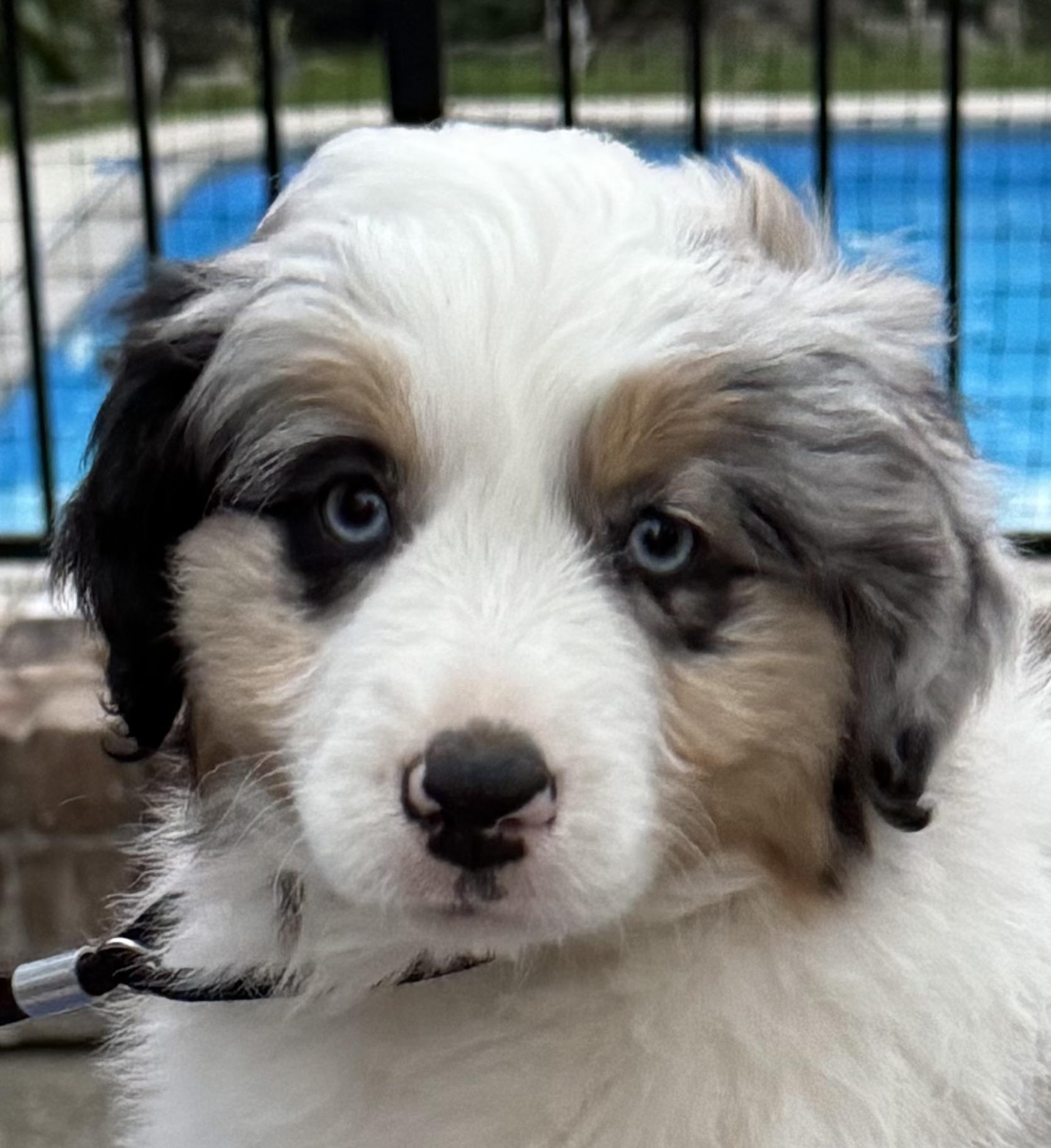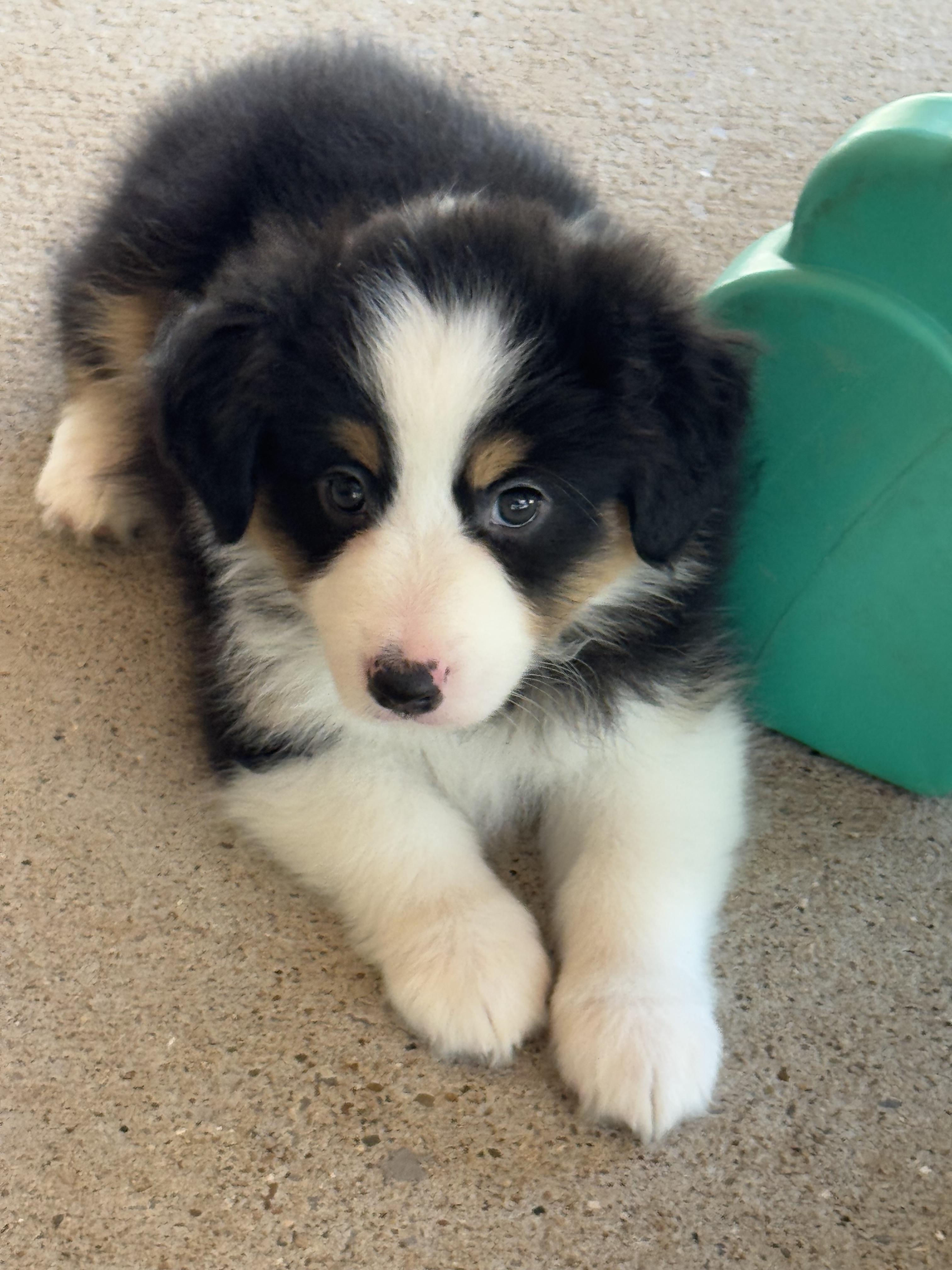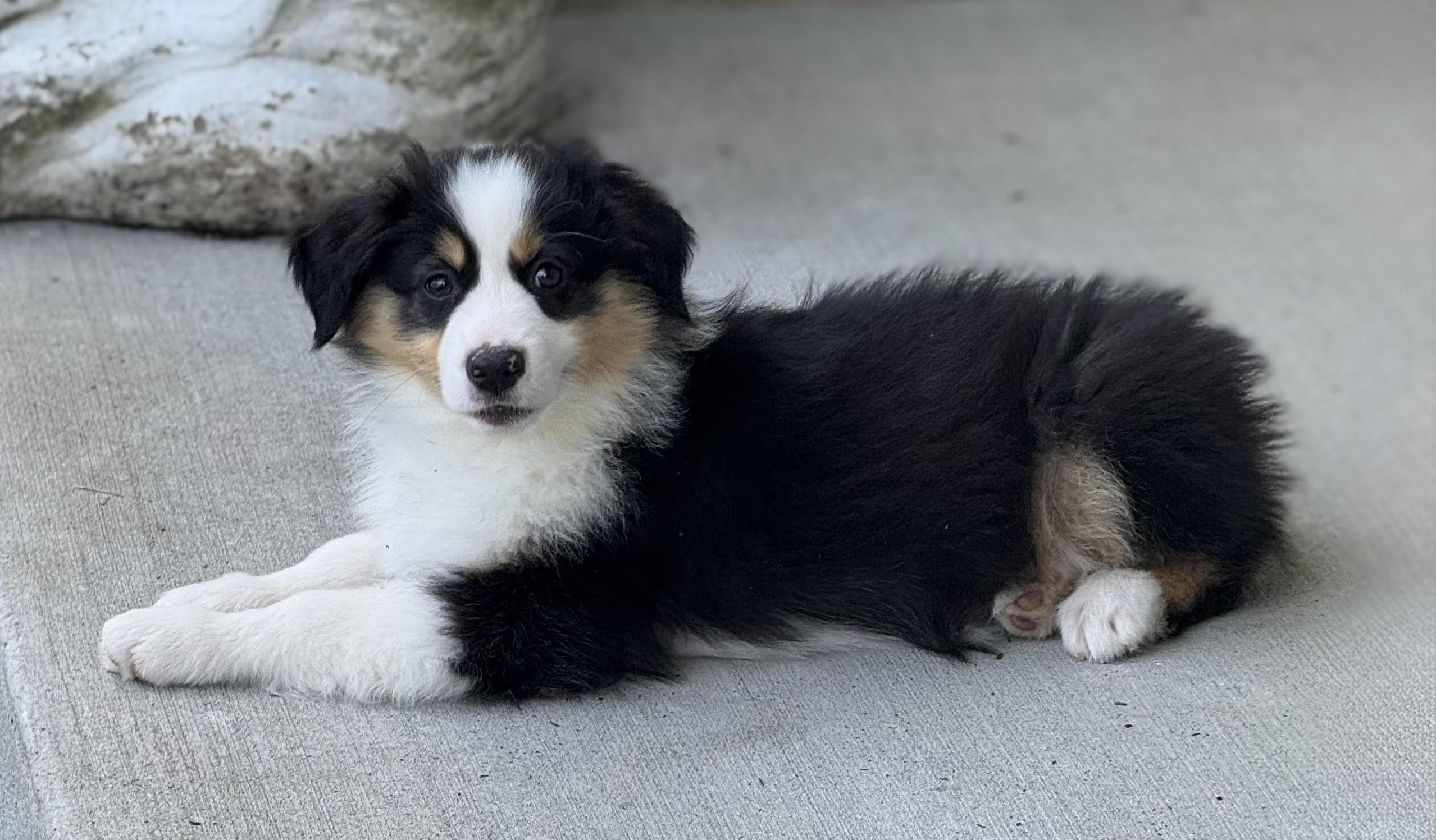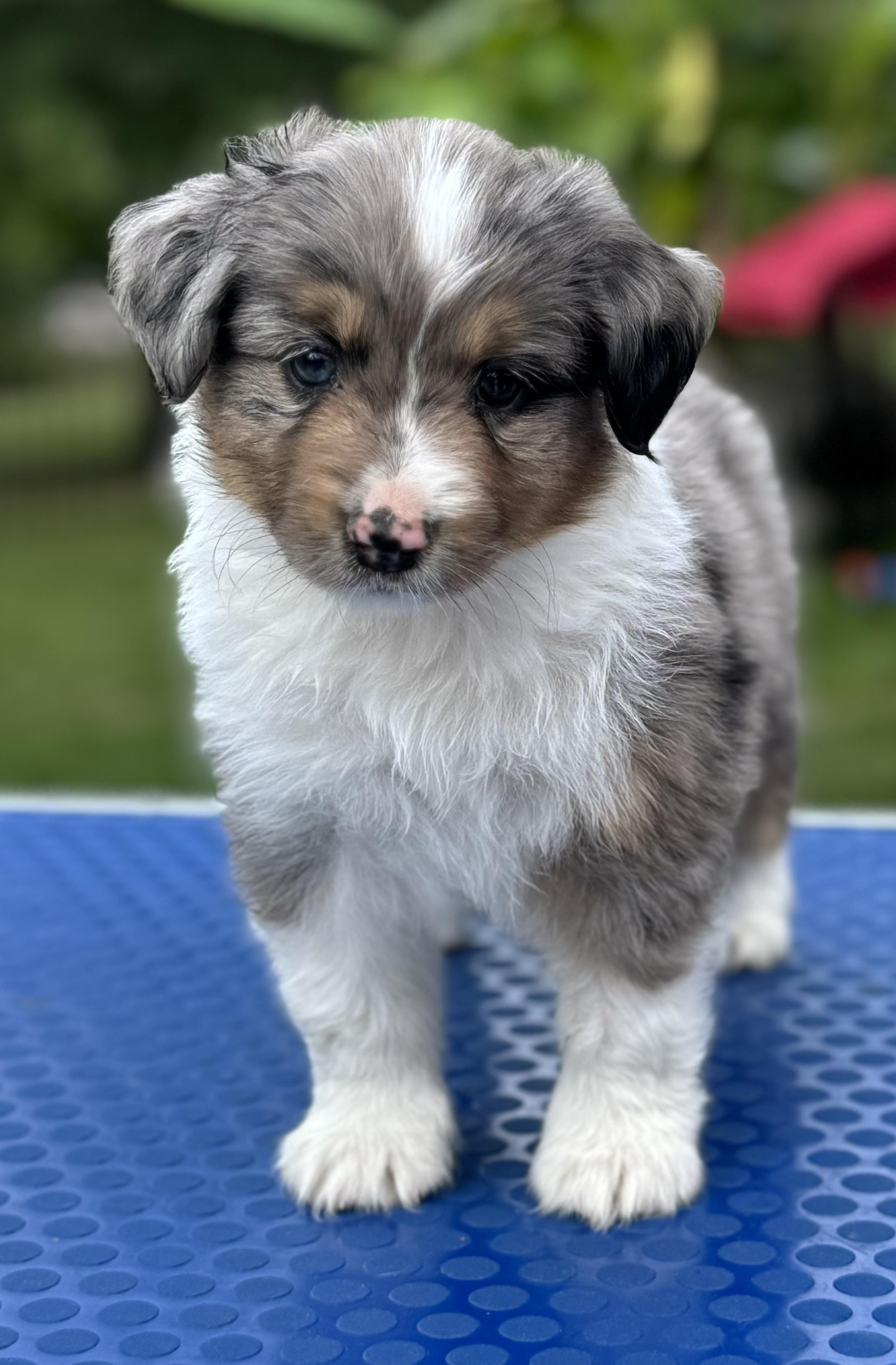 Our puppies include red tri-color, black tri, red merle, and blue merle. Colors will vary depending on the parent dogs.