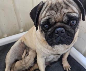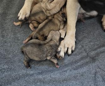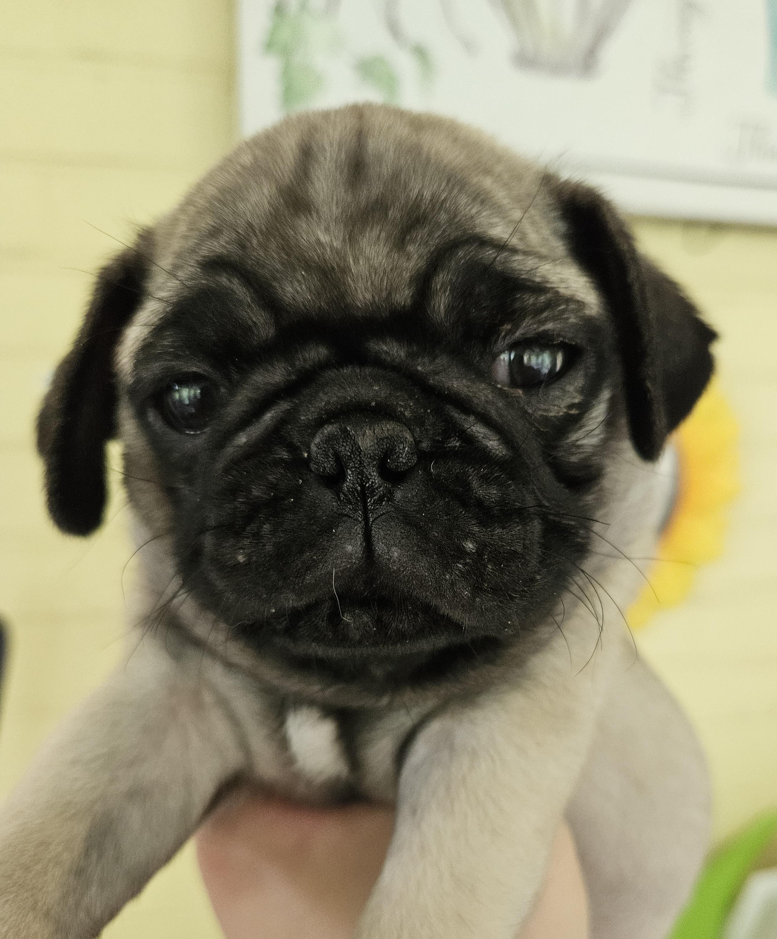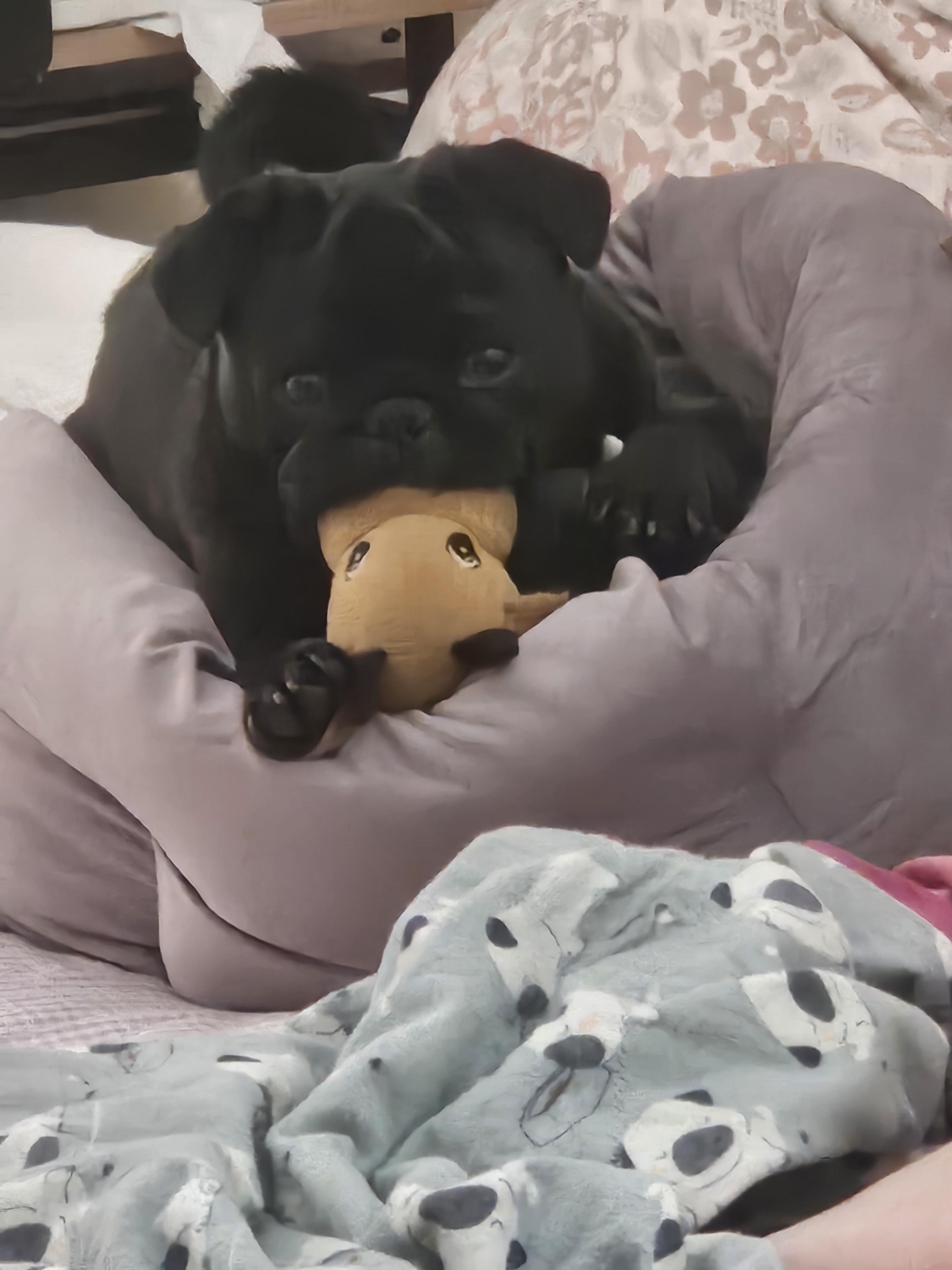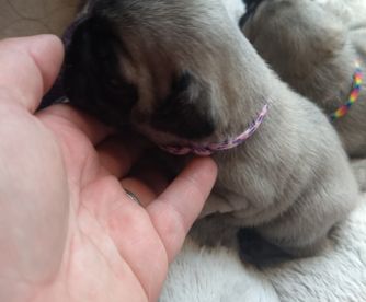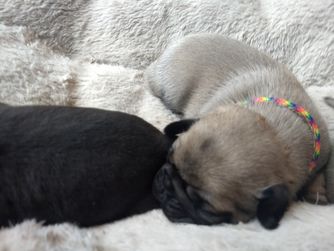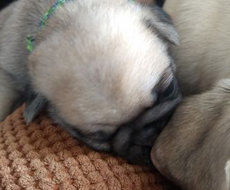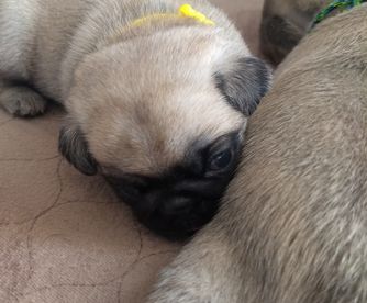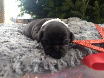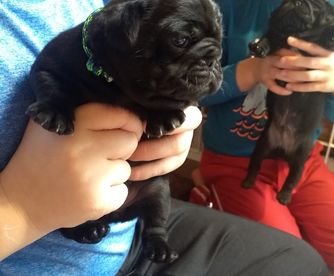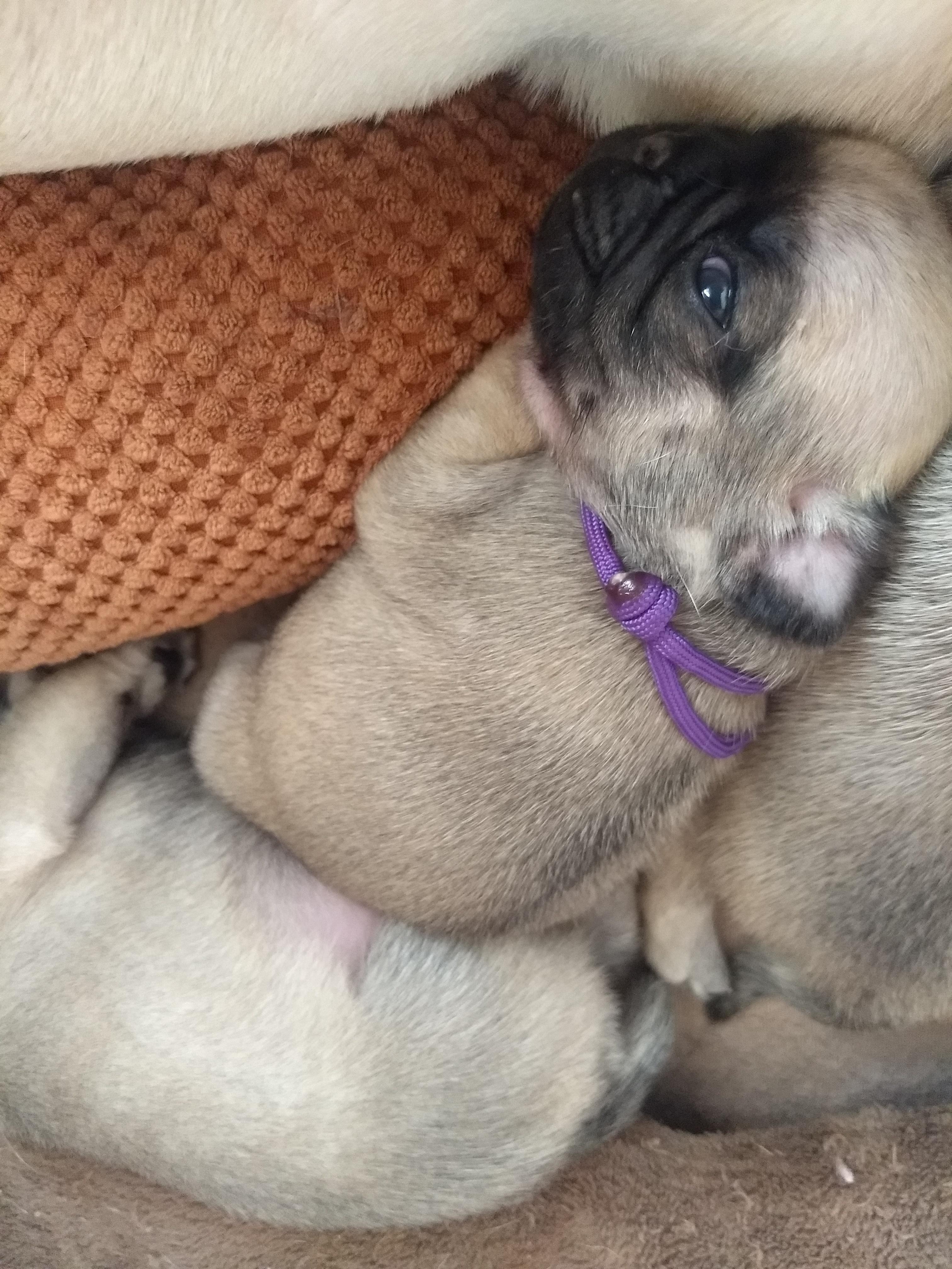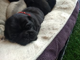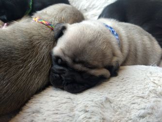We potty train our Pugs on an indoor potty patch. They each have a toy with their pack scent sent home to ease separation anxiety. The parents have been genetically tested for Pug Encephalitis, PK deficiency and degenerative myelopathy. Our Pugs are all AKC registered. Each week we send our families an email with pictures, a YouTube video and puppy information.